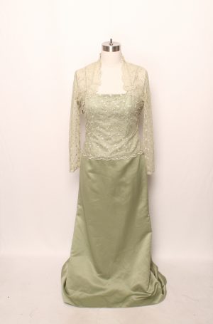 Teal Off Shoulder Satin and Lace Dress -Rental