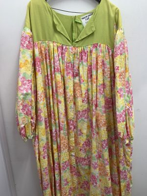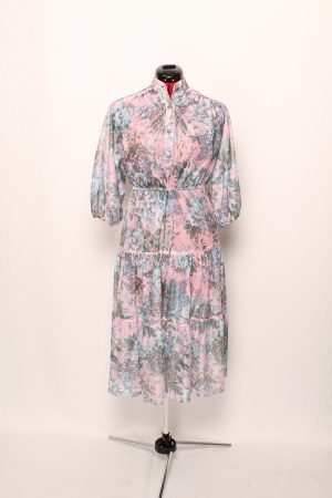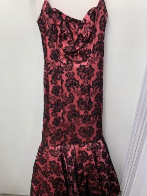 Pink Off Shoulder Flower Print Satin Gown with Bow -Rental
