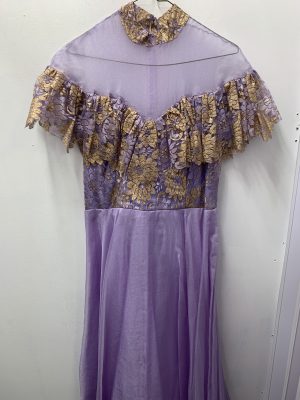 Purple Organza Dress with Gold Lace -Rental
