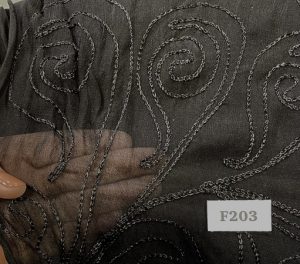 F203 Stitched Swirls on Black Chiffon