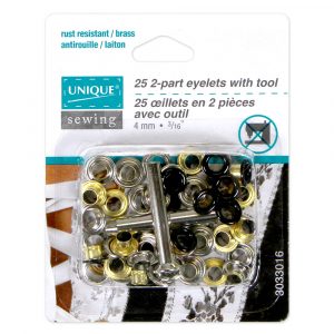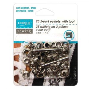 2 Part No-Sew Eyelets with Tool – 4mm (1⁄8″) – Black – 25 pcs.