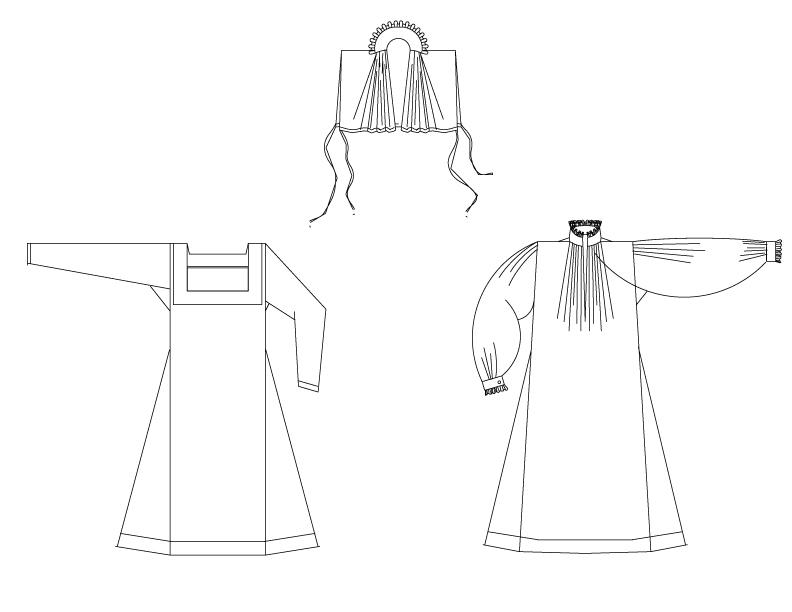 The Elizabethan Lady's Underpinnings package includes (click to view technical illustrations): Two styles of smocks, with partlet Corset with three style variations Farthingale & bum roll