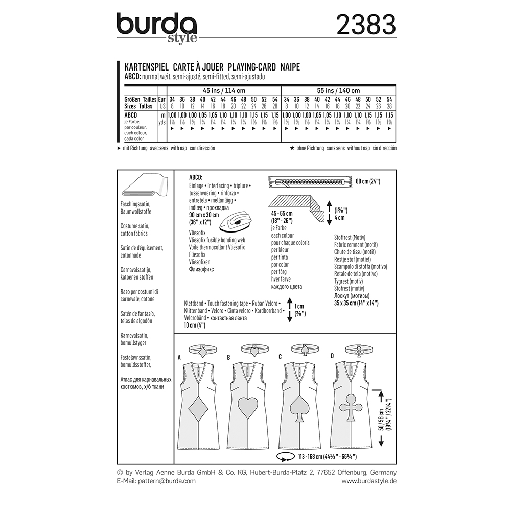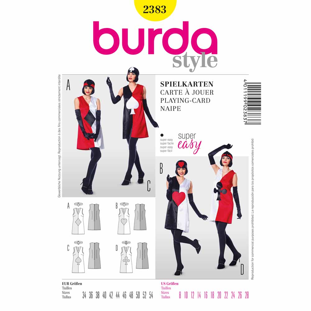 BURDA PATTERN - 2383 Womens Costume Pattern - Playing Card