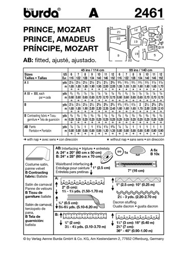 BURDA PATTERN -Â 2461 Child's Prince Costume