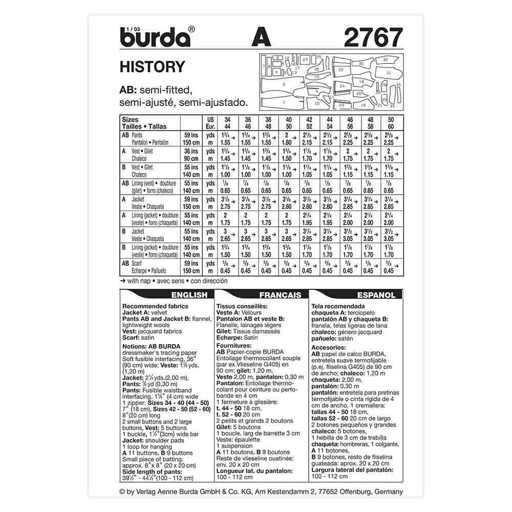 BURDA PATTERN -Â 2767 Costume Mens-Historical