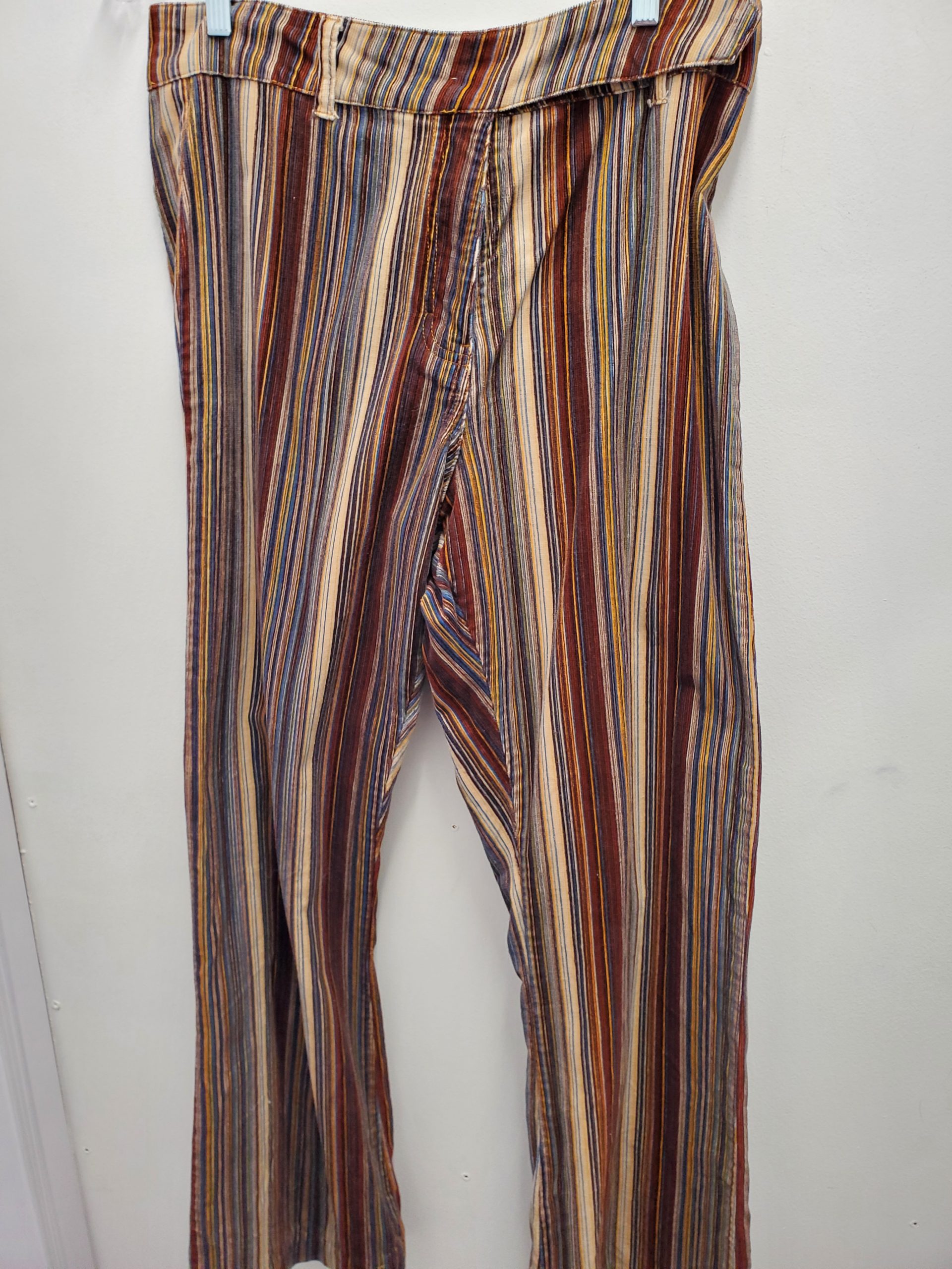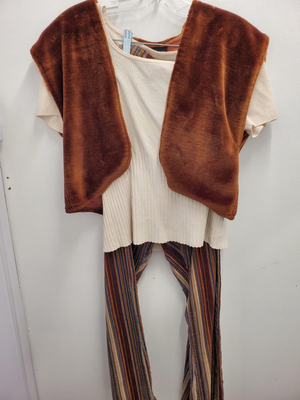 Mulitcolour Striped Pants, Cream Knit Shift, Brown Fur Vest
