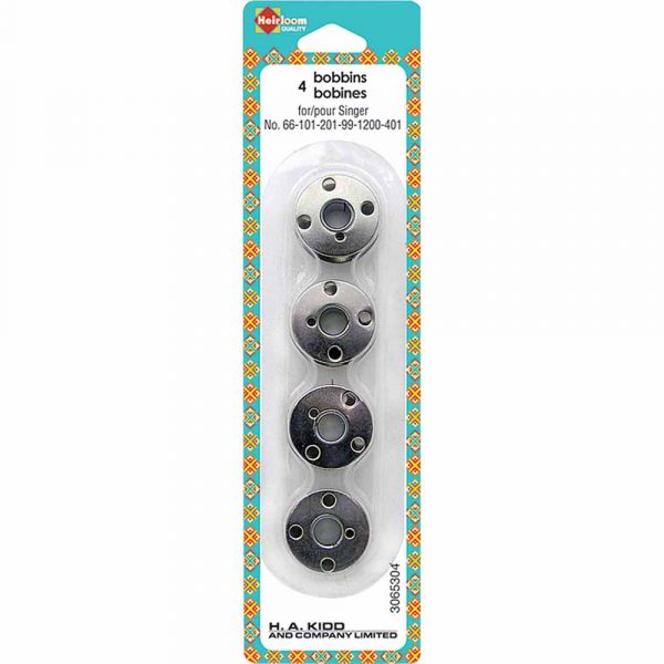4 four-hole metal bobbins suitable for most Singer machines