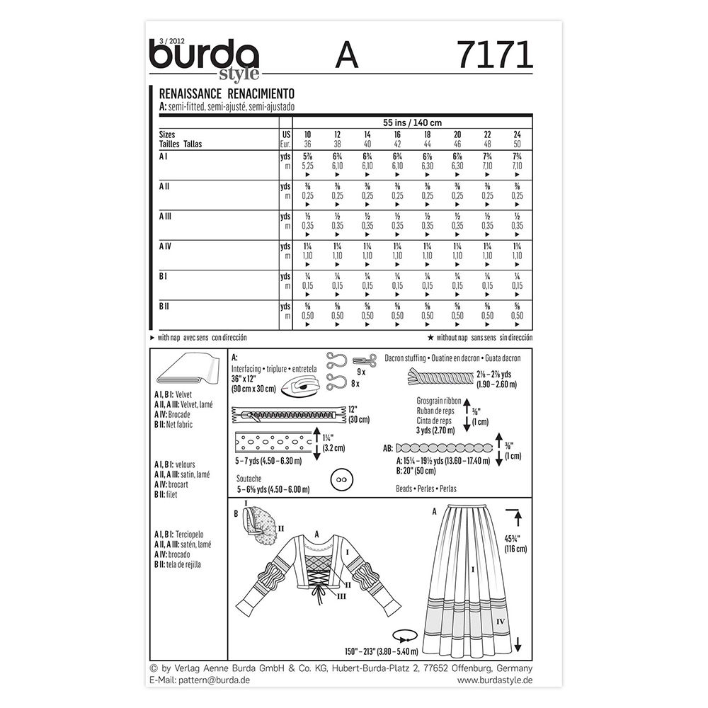 BURDA PATTERN -Â 7171 Renaissance Dress