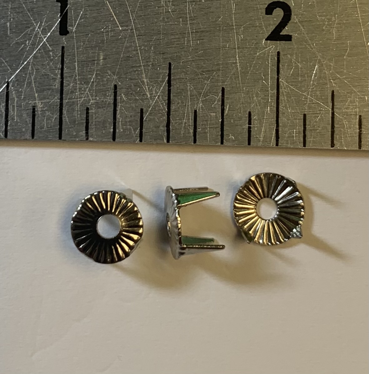4 prong stud base. Great for attaching gems, jewels or other items to turn into a stud to attach to fabric.