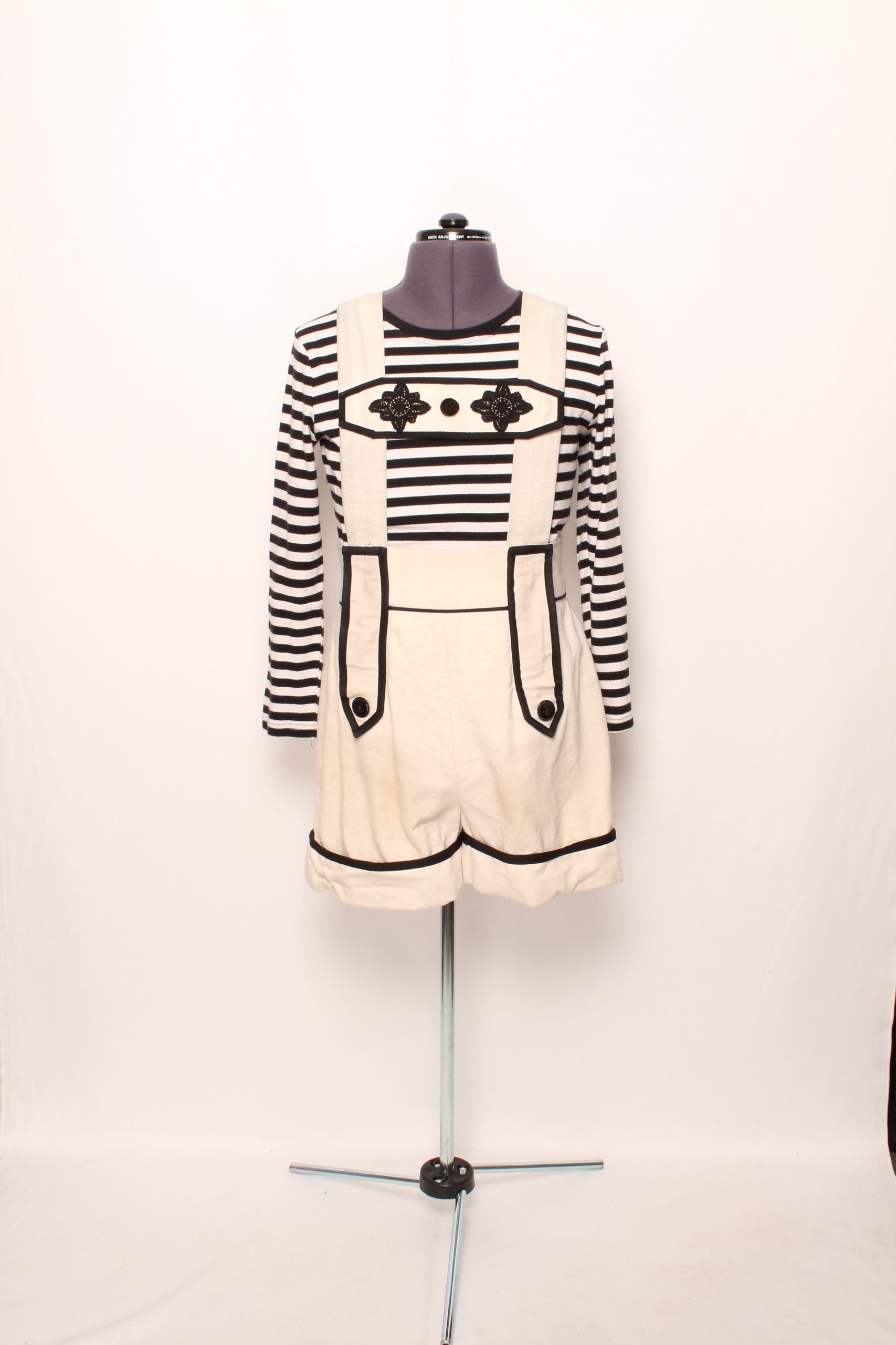 Black/Wbite Striped shirt, Cream/Black Lederhosen