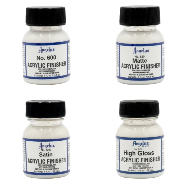 After using Angelus Leather Acrylic Paint, apply Angelus Acrylic Finisher to your customized sneakers to help protect the paint from minor scratches/scrapes. Available in a variety of finishes from Matte, all the way up to High Gloss.
