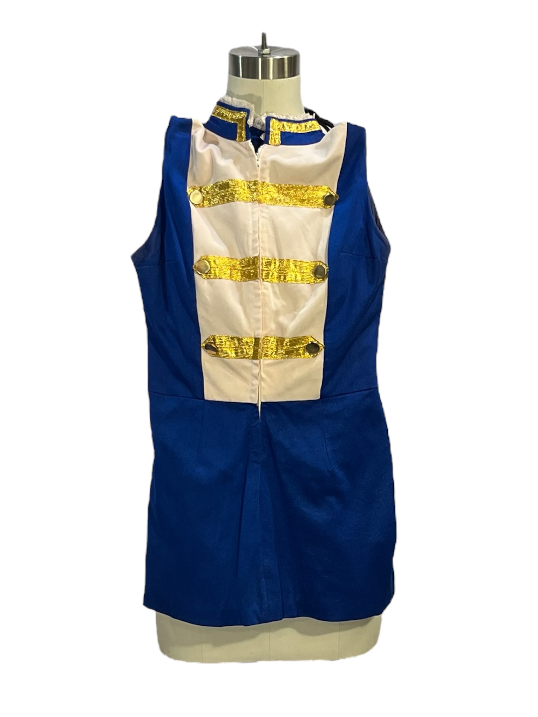 - Blue/White Dress with Gold Trim and Gold Buttons