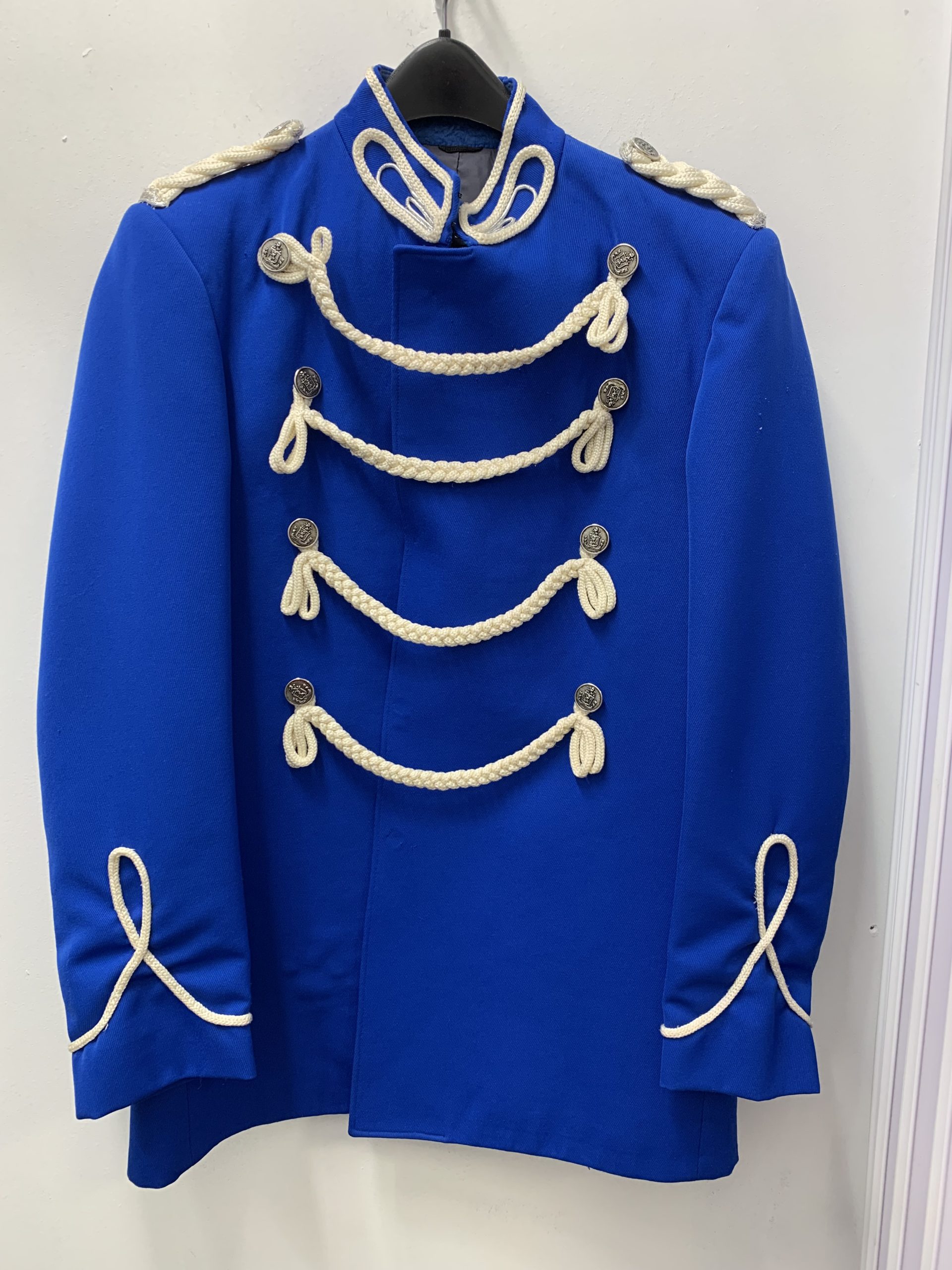 -Blue Blazer with Silver Buttons & White Trim