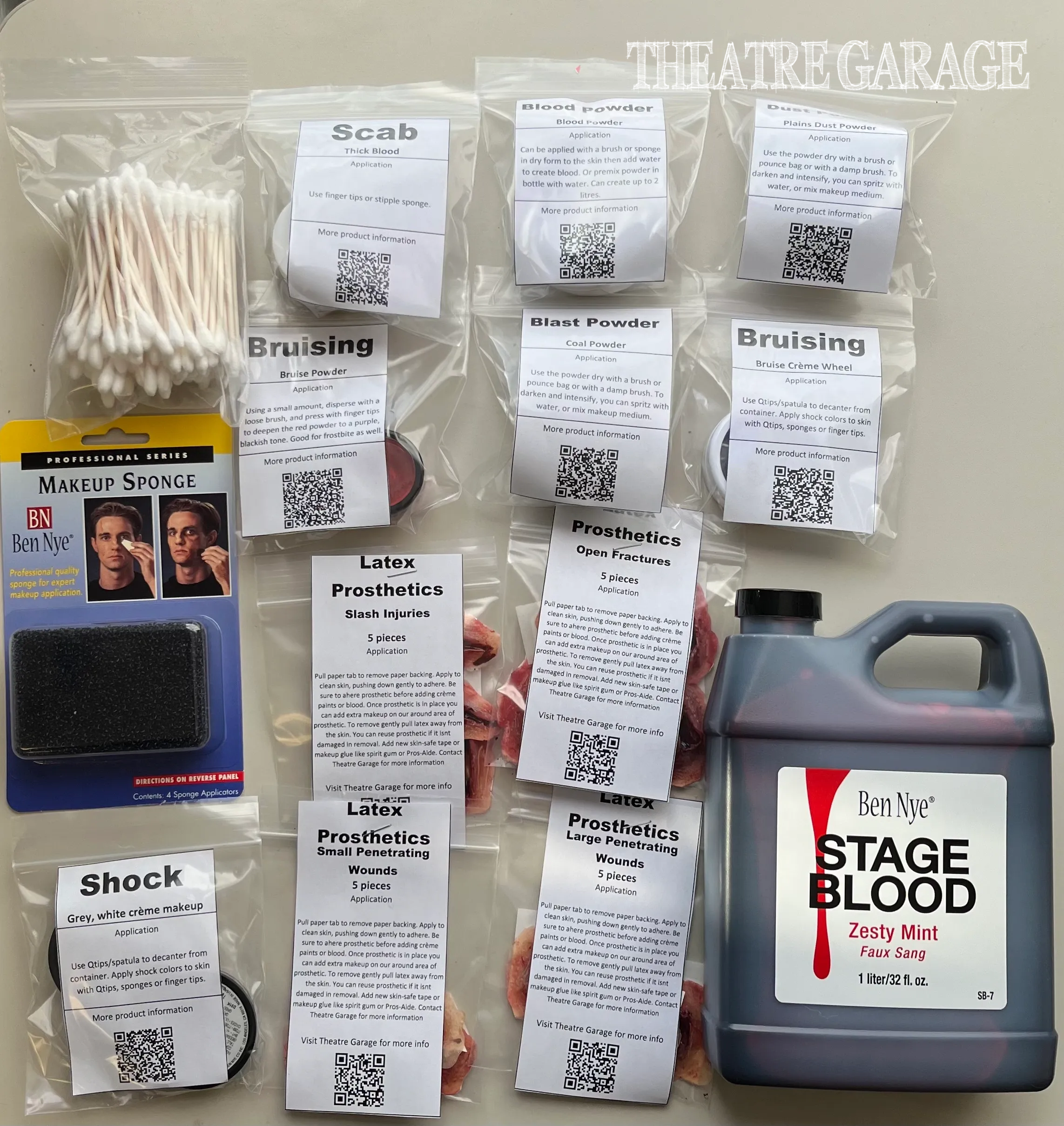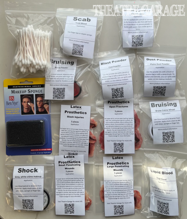 Our Moulage kit was designed and prepared by Theatre Garage with consultation with Stephen Ferry.