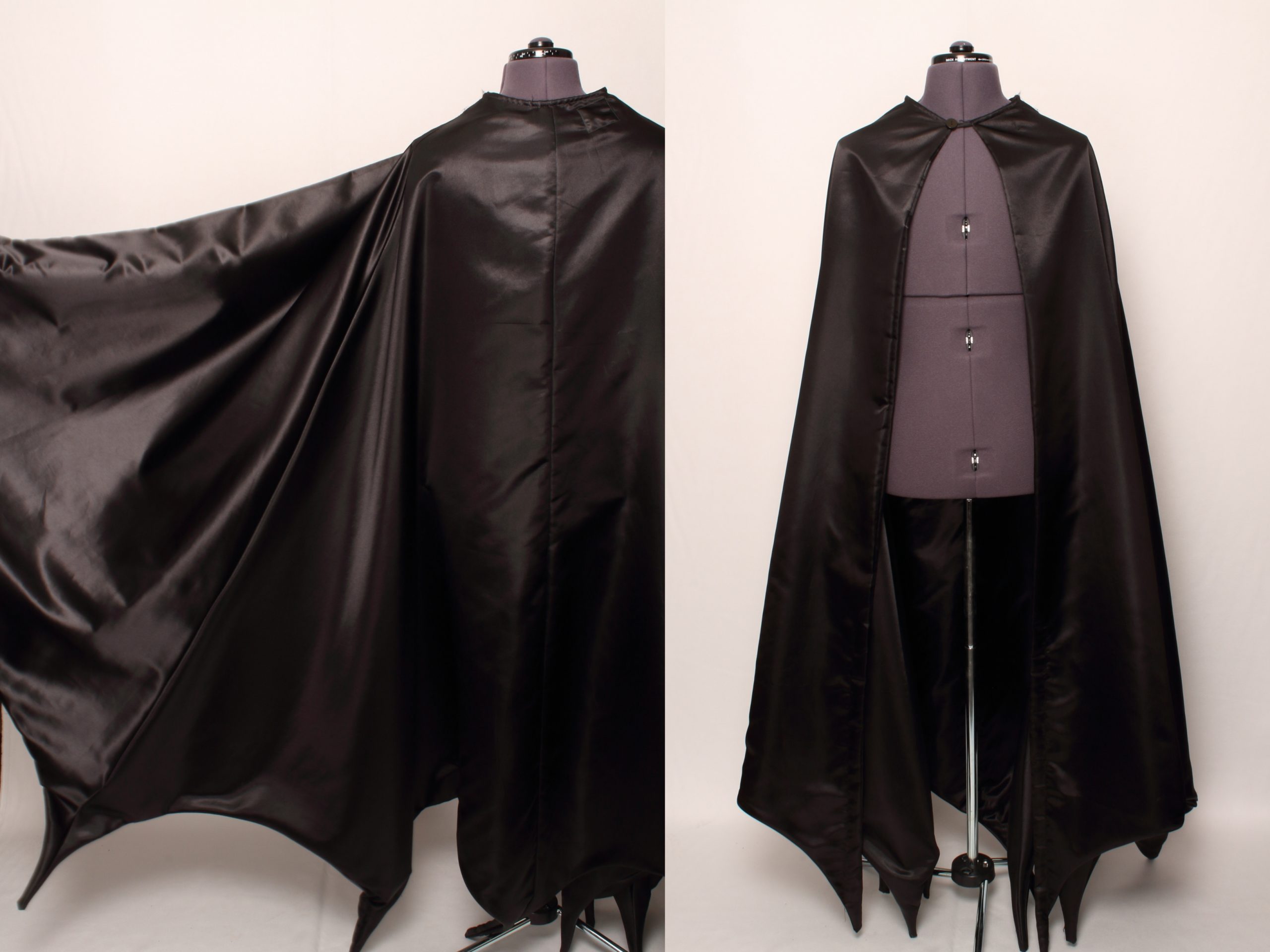 -Black satin bat wing hem cape