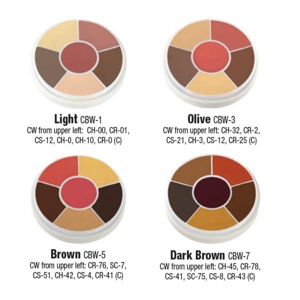 Creme highlight, contour and rouge shades, all in one wheel! Cremes blend easily for natural, long-lasting results to brighten, sculpt and add warmth. Light, Olive, Brown and Dark Brown versions offer 6 flattering shades each for a diverse range of complexions.