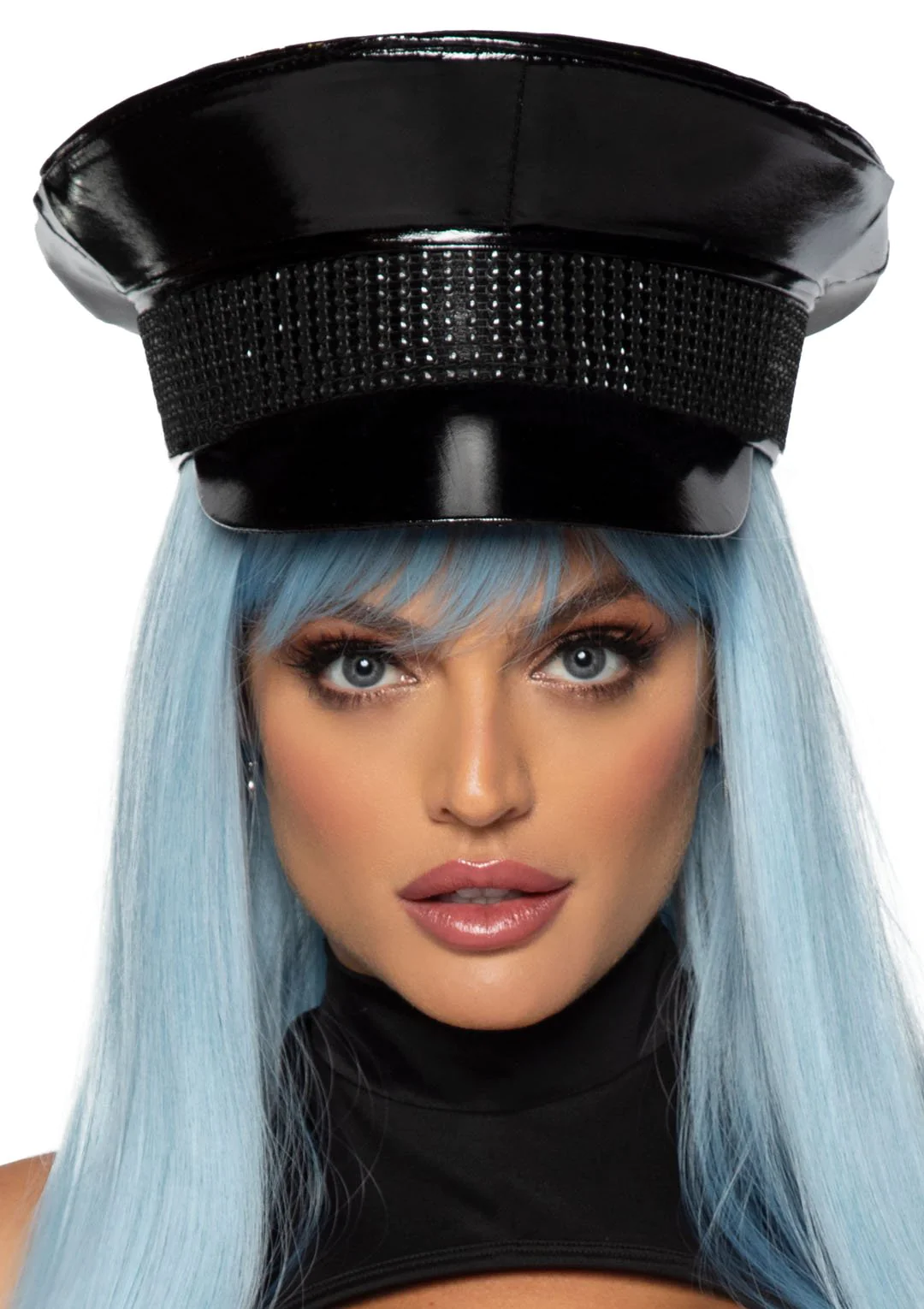 Black Rhinestone Trimmed Military Hat (Bin:158)