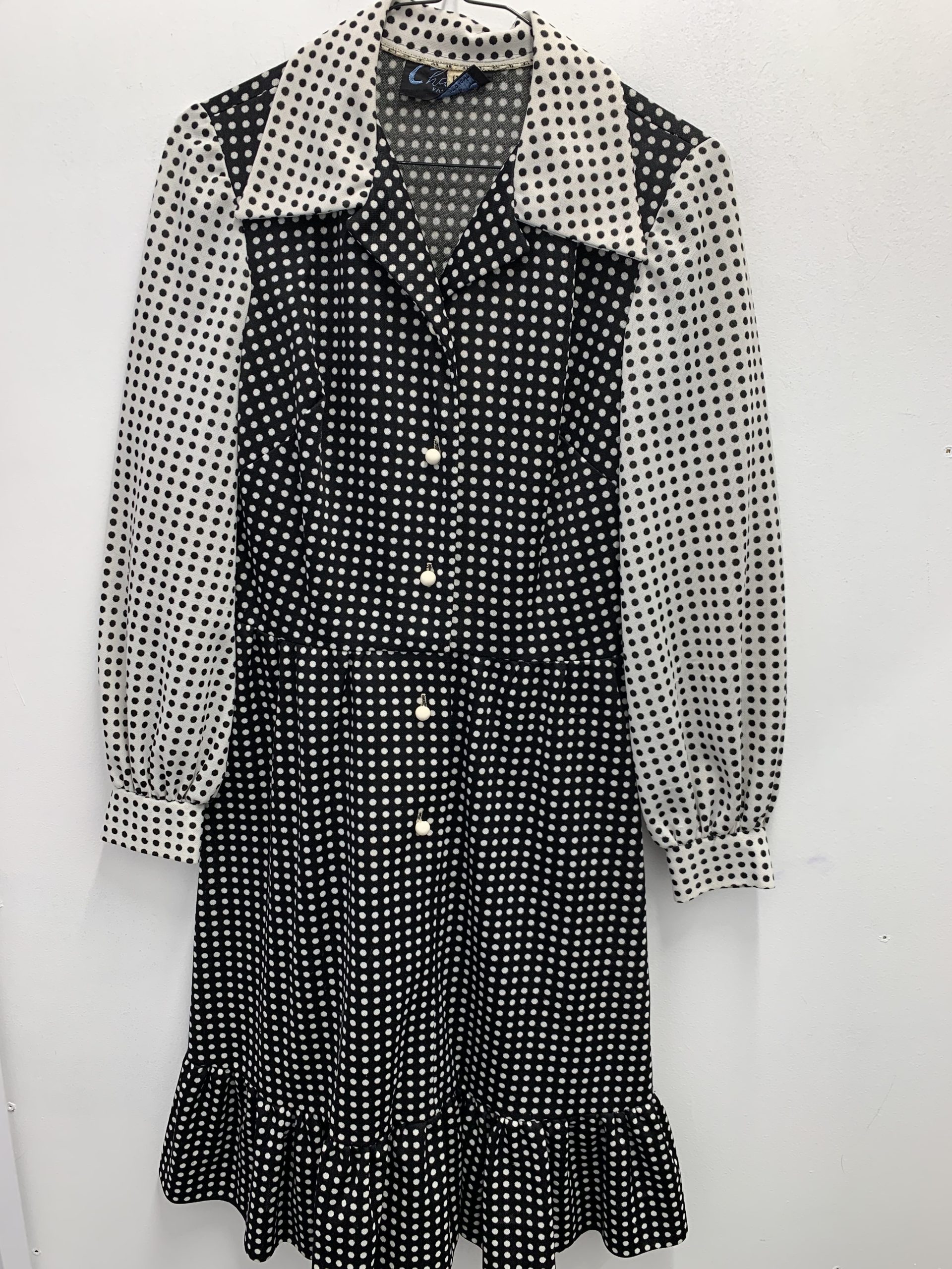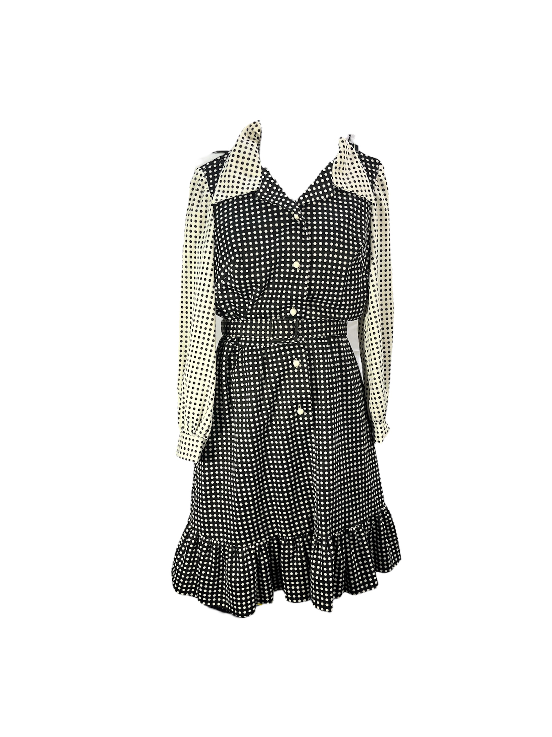 Black/White Polka Dot Long Sleeve Dress -Rental