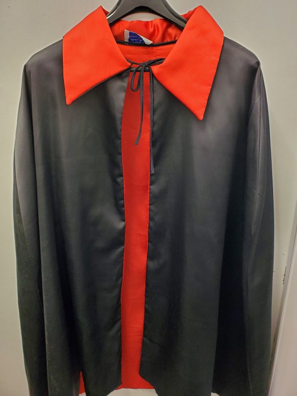 Black + Red Satin Cape with Collar Cape -Rental