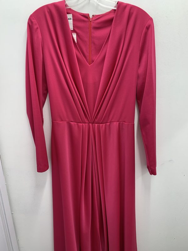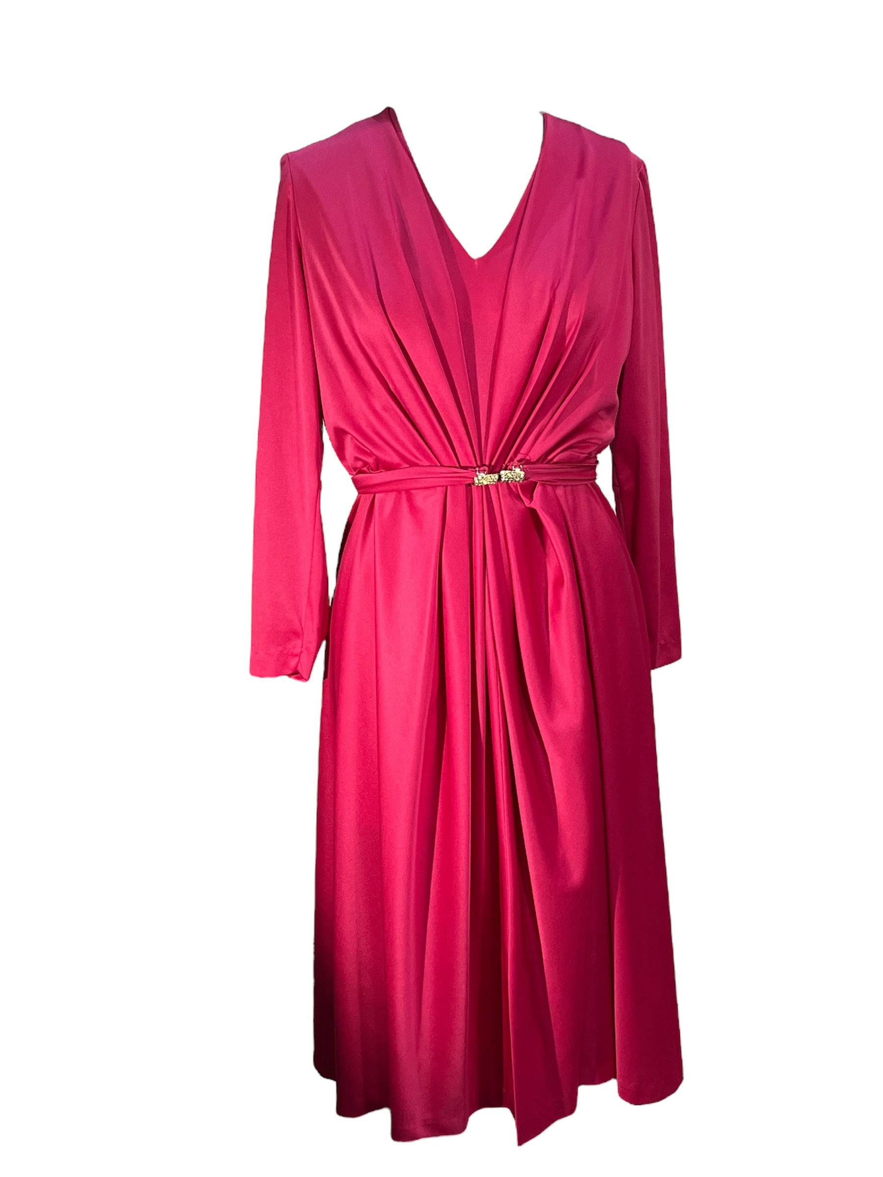 Bright Pink Long Sleeve Pleat Front Dress -Rental