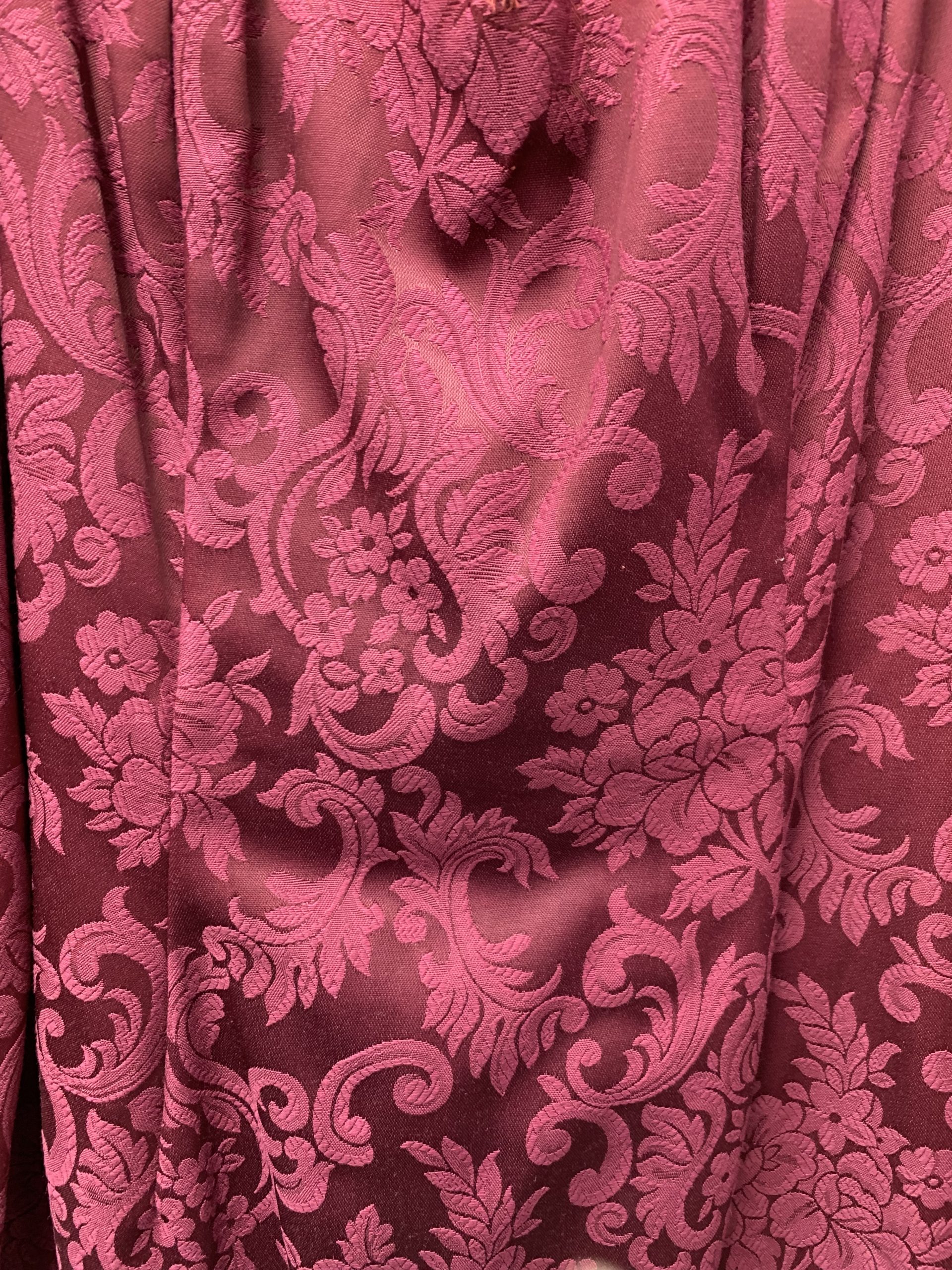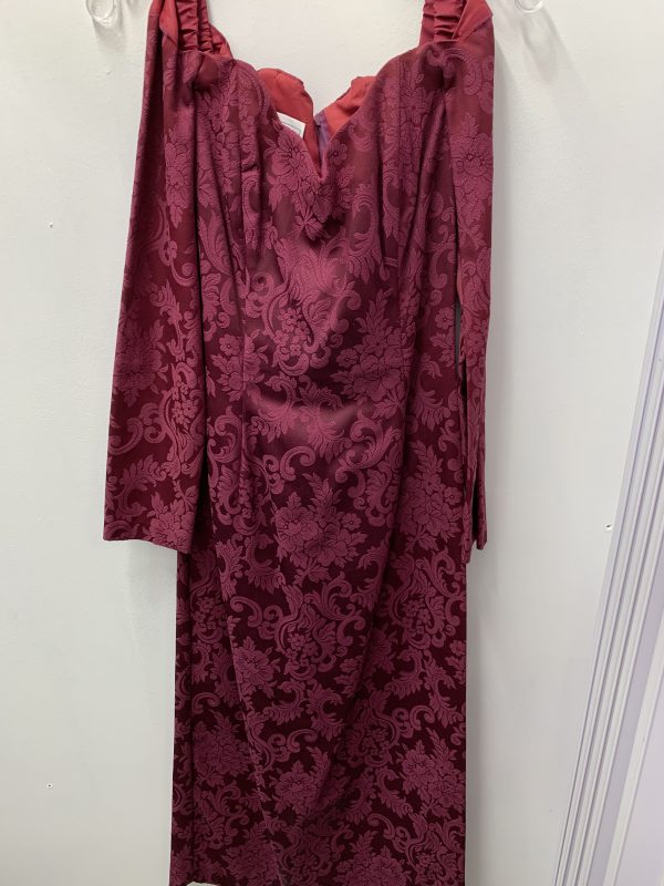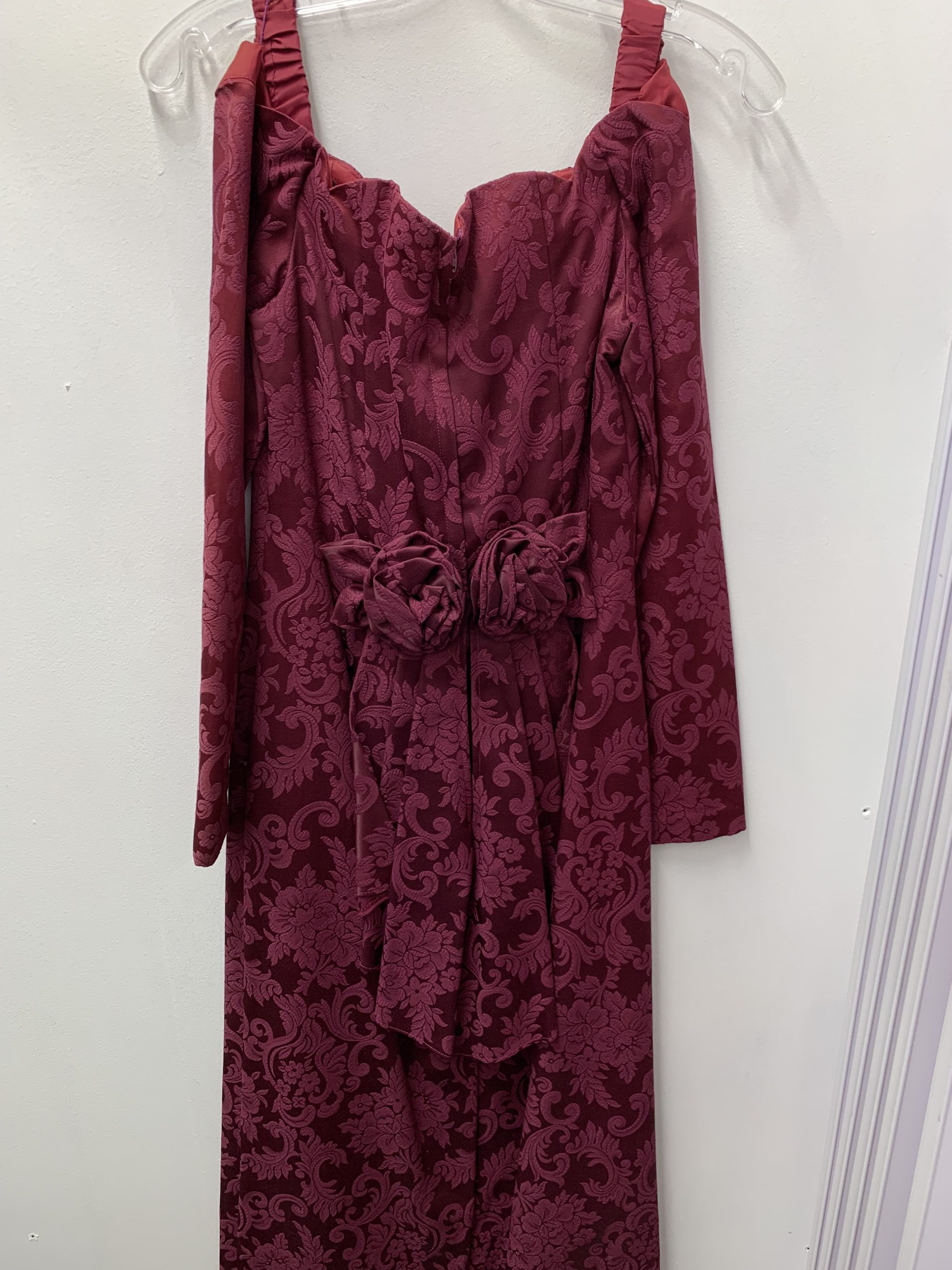 - Floral Brocade Burgundy Dress, with Rose shaped Bows on Back