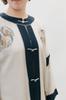 Pattern includes heat transfer design for traditional embroidered motifs and instructions for embroidery. The pattern provides instructions for knotted buttons and loop closures (frogs).