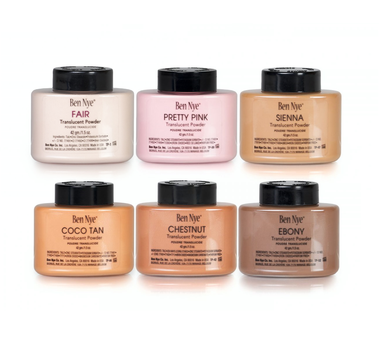 Ben Nye's Classic Face Powders originated in the theatrical environment, which generally requires more contrast between shades to create a more visibly defined complexion from the stage. These powders are designed with endurance and durability in mind, allowing them to hold up to the high demands of performance artists. That being said, shades like Fair, Chestnut, Sienna, and Ebony can be worn comfortably and elegantly in beauty and everyday application.