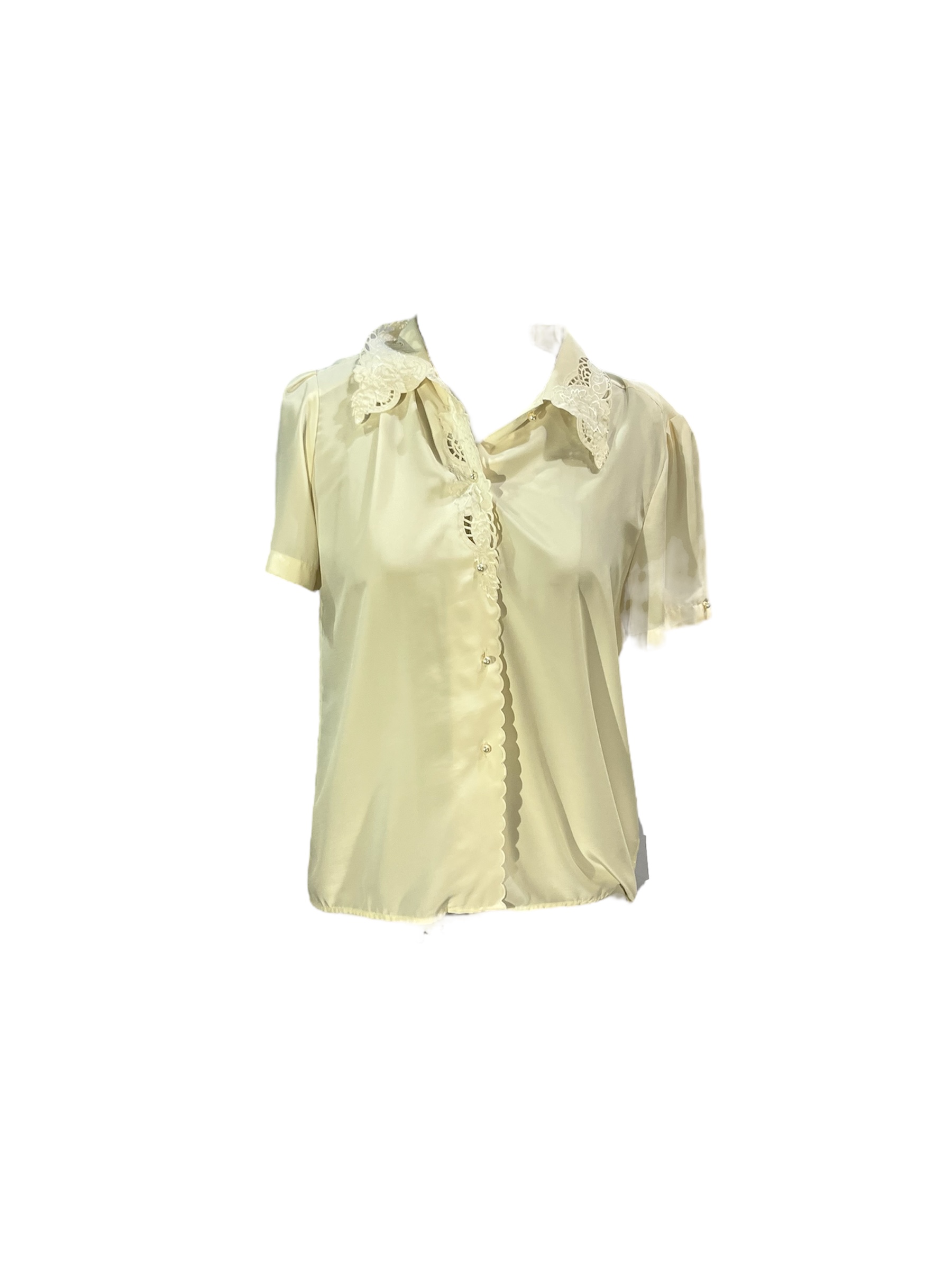 -Cream chiffon blouse with embroidery and pearl buttons