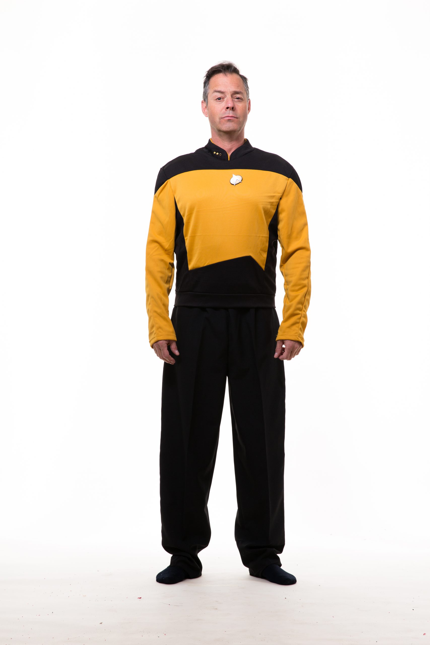 Shirt, 2 Gold Pips, 1 Black Pip, 1 Communicator Pin, (Pips & Communicator in Costume Kit)