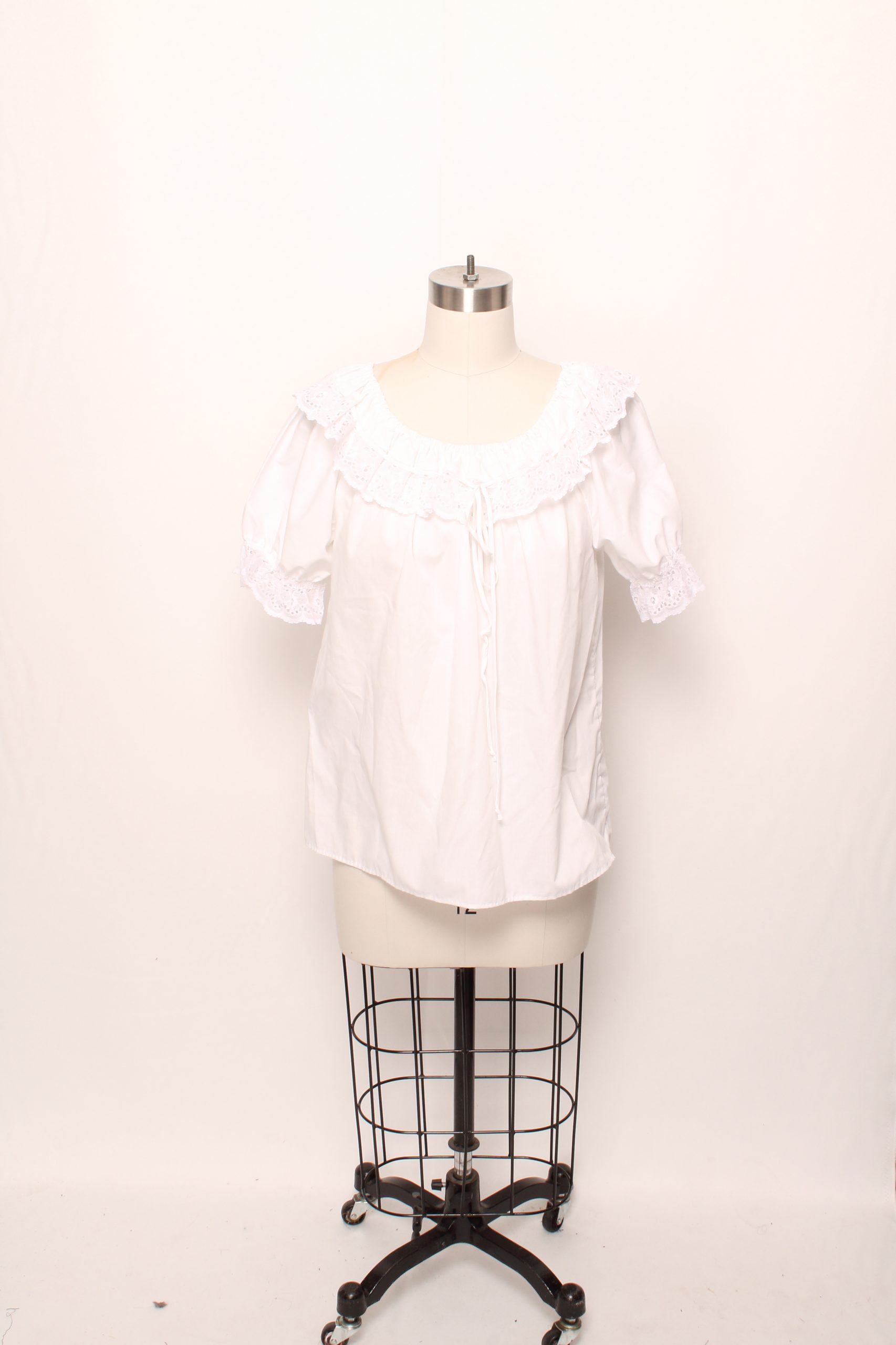 -White lacy blouse with decorative draw string