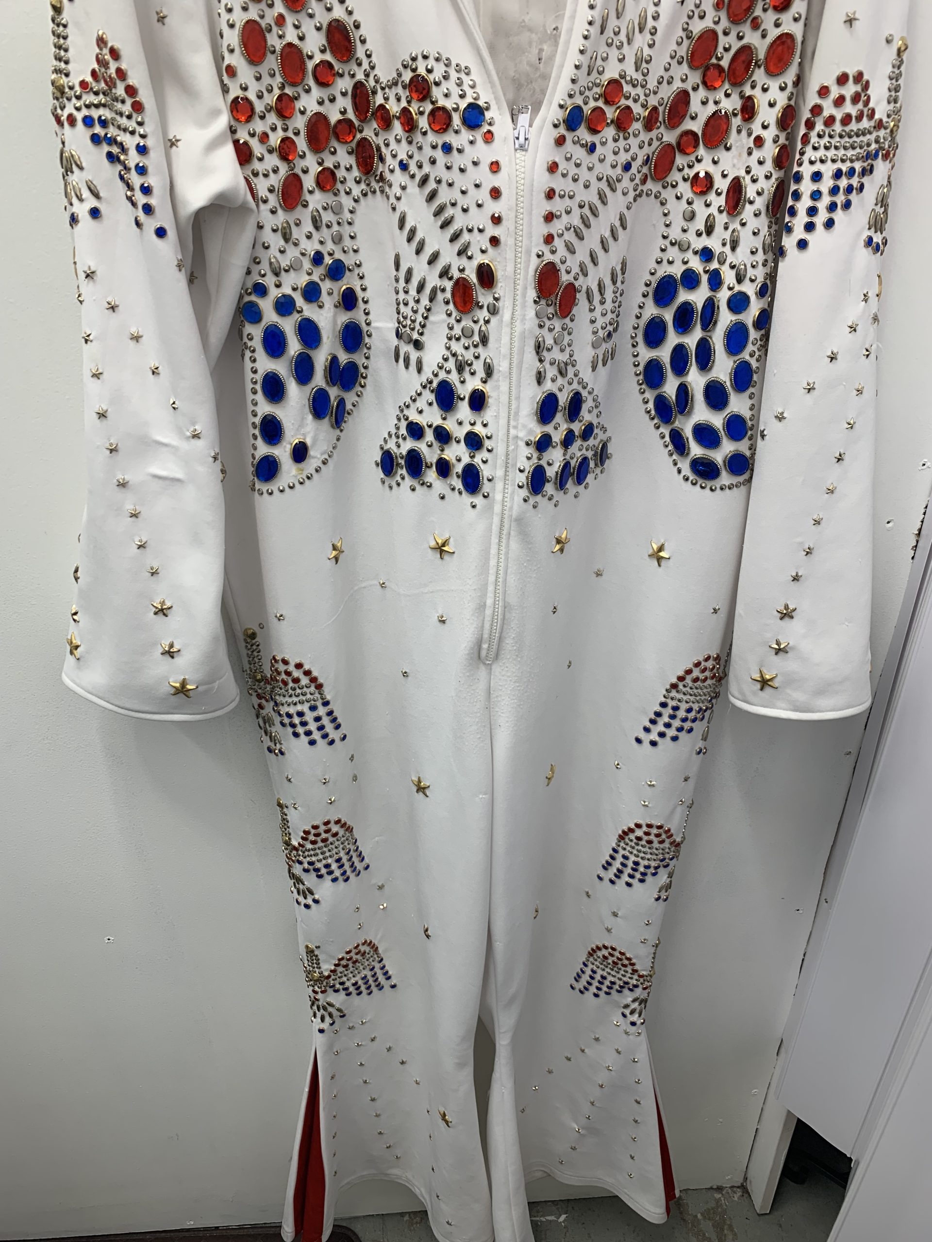 Jumpsuit W/RhineStones Rhinestone Eagle on back Elvis Wig Sash, Sunglasses, Chain
