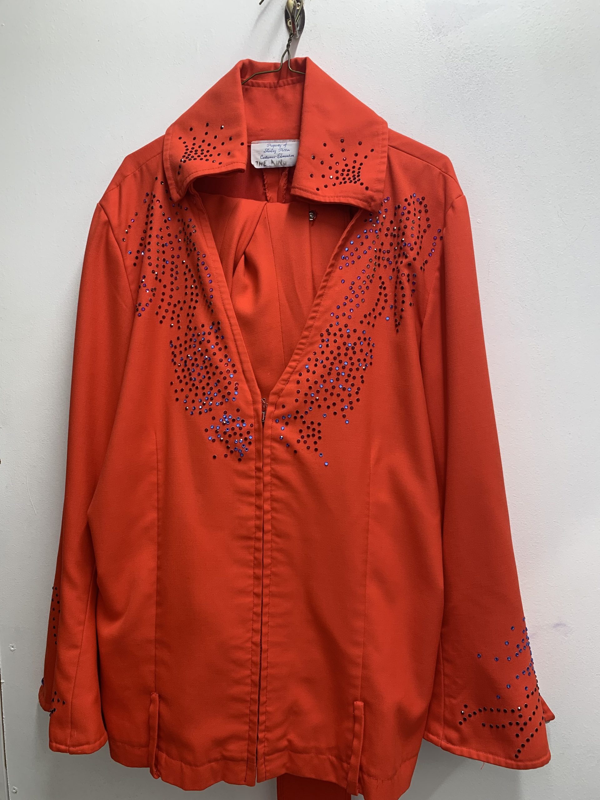Elvis Wig, Jacket w/Rhinestones, pants w/Blue Band on Cuff, Matching belts Sash, Sunglasses, Chain