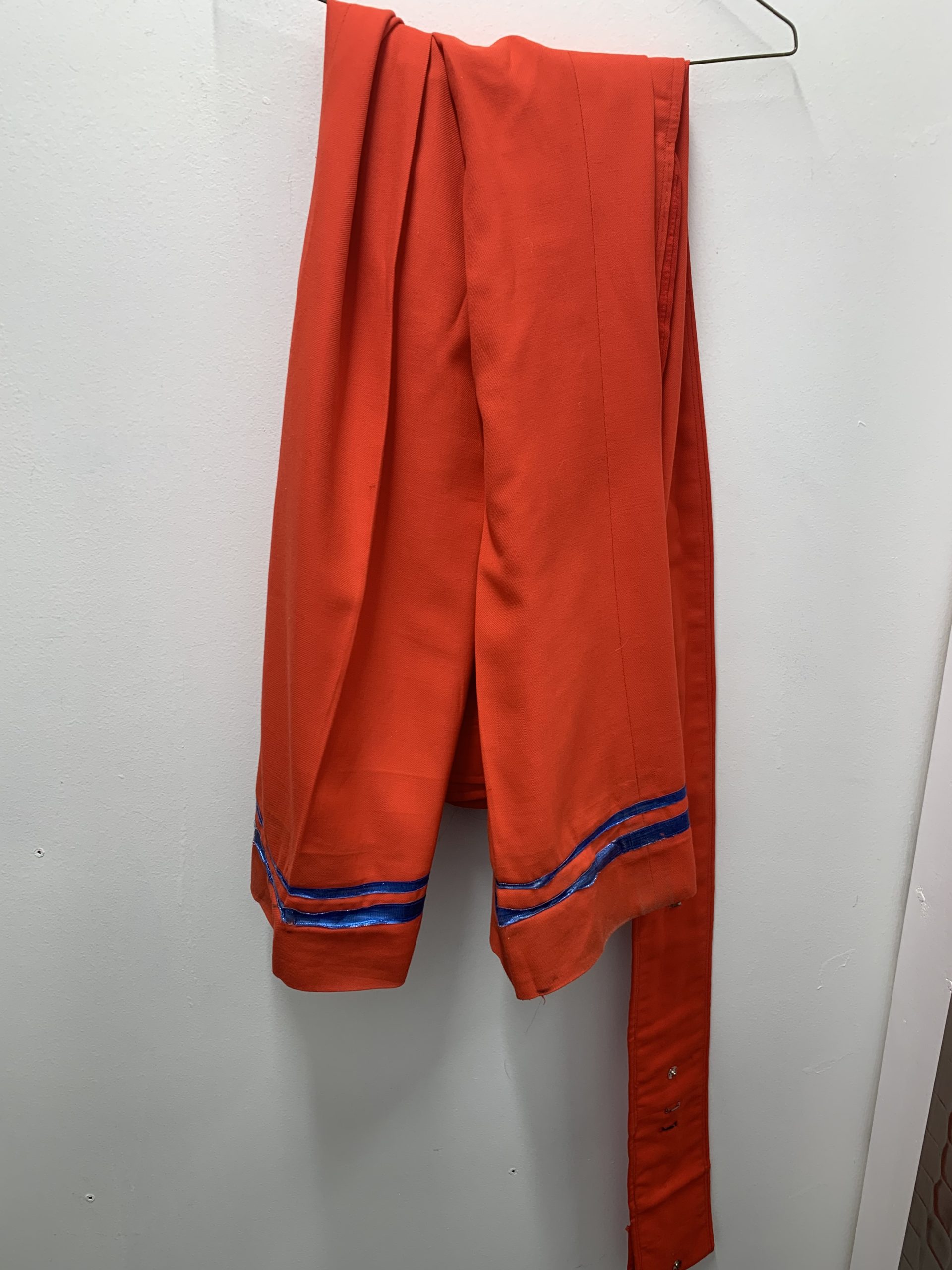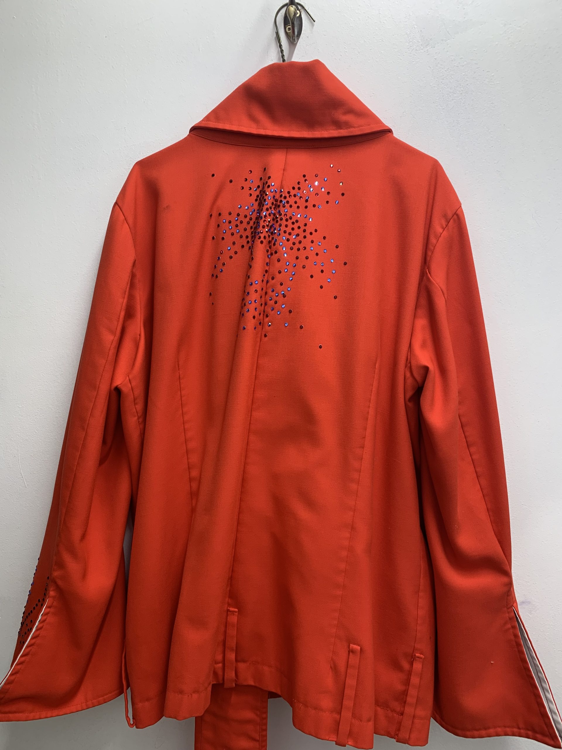 Elvis Wig, Jacket with Rhinestones, pants with Blue Band on Cuff, Matching belt