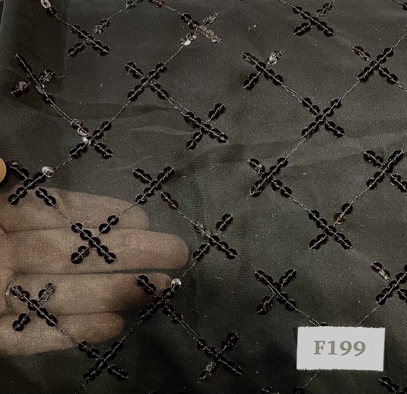 Chiffon like fabric. Metallic shine. Sequins are sewn.