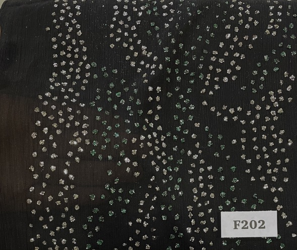 F202 White Green Gems on Black Chiffon