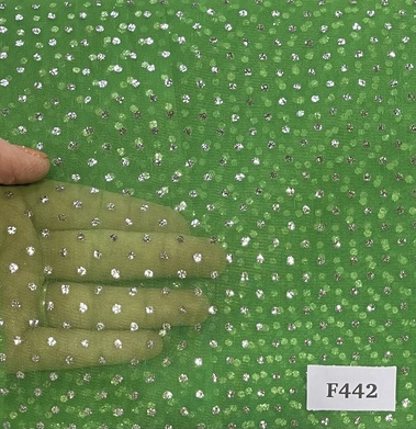 F442 Green Silver Dots Organza