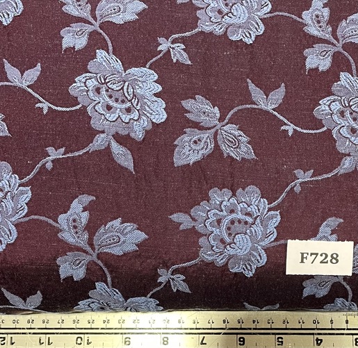 F728 Burgundy Blue Floral Brocade