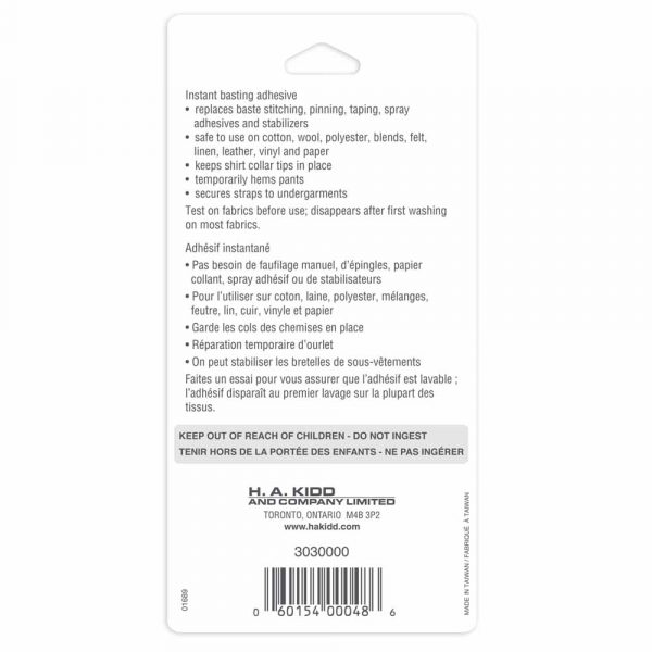 6g (US 0.21fl oz) non-toxic fabric glue pen. A great alternative to pins or stitching. Temporary bond (repositionable for up to 3 minutes) that dries clear and washes out. Perfect for quilts, appliques, hems and craftwork, etc. Works with most cotton and combination fabrics. Easy to use twist pen design.