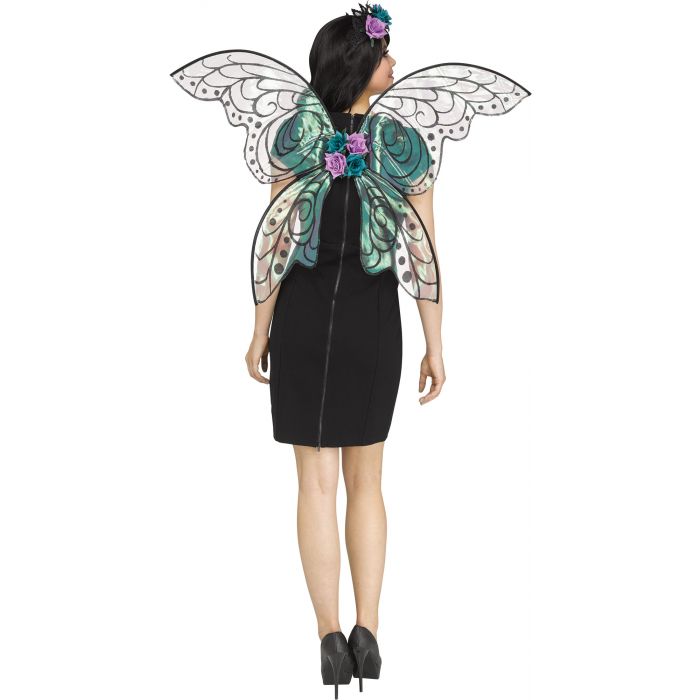 These beautiful large wings are elegant and adds just enough sparkle to any fairy costume. The come with blue and purple flowers attached and measure 80cm tall and 63cm wide.