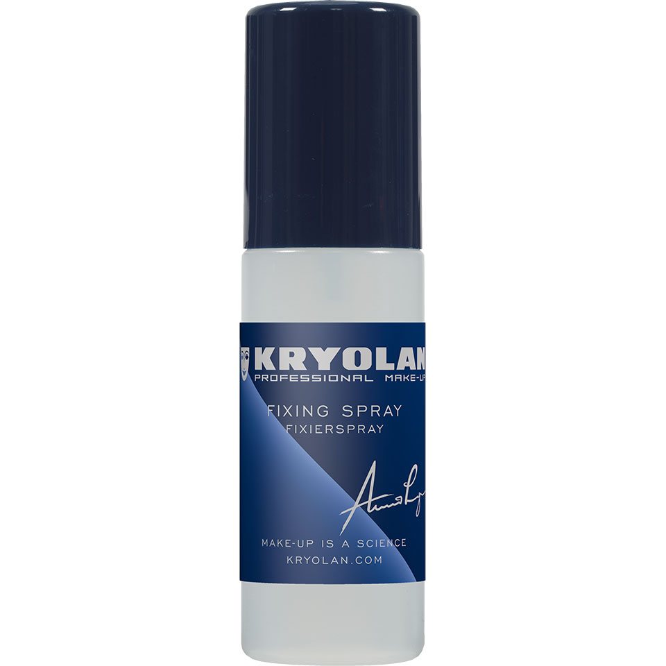 Kryolan Fixing Spray is a special cosmetic preparation for application over make-up. It creates an invisible protective film, which prolongs the life of the make-up and its effects. Fixing Spray is particularly effective for bodypainting with Aquacolor and with other wet make-up preparations. Fixing Spray is applied from a distance of approximately 30 cm thinly and evenly and allowed to dry. The protected make-up is then smudge and rub-proof and withstands even excessively harsh effects and exposure. Fixing Spray makes any make-up resistant to cold water and considerably delays the deterioration of make-up on the skin as a result of perspiration. Fixing Spray contains alcohol and should not be applied near eyes or mucous membranes. Fixing Spray can be easily removed with soap and warm water.