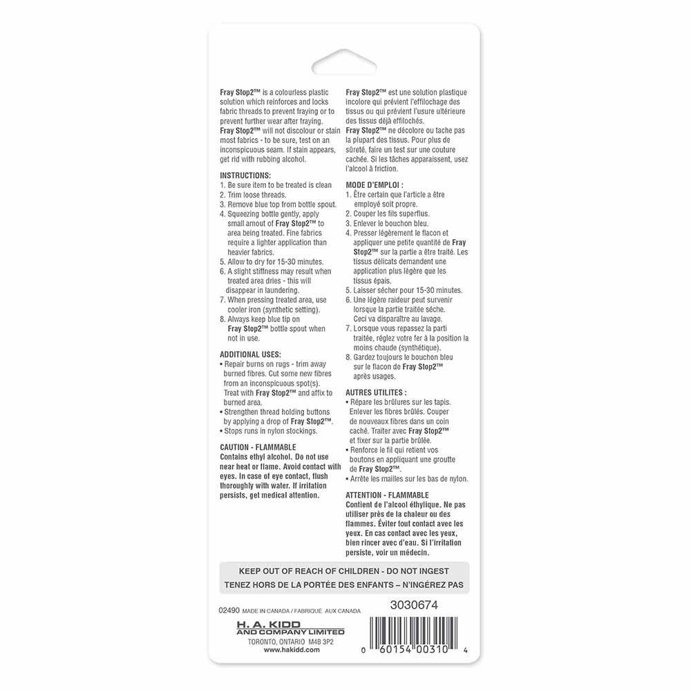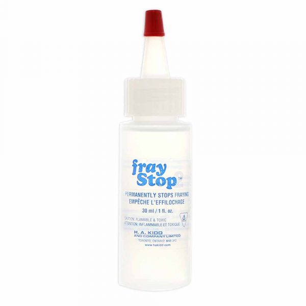 Colourless plastic solution which reinforces and locks fabric threads to prevent fraying or to prevent further wear after fraying.