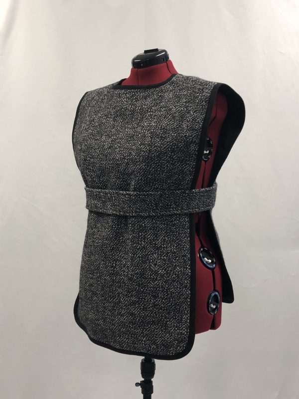 Grey Wool Tunic w/Black Binding, Attached Matching Belt