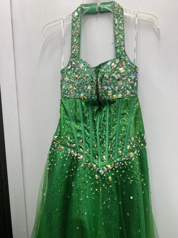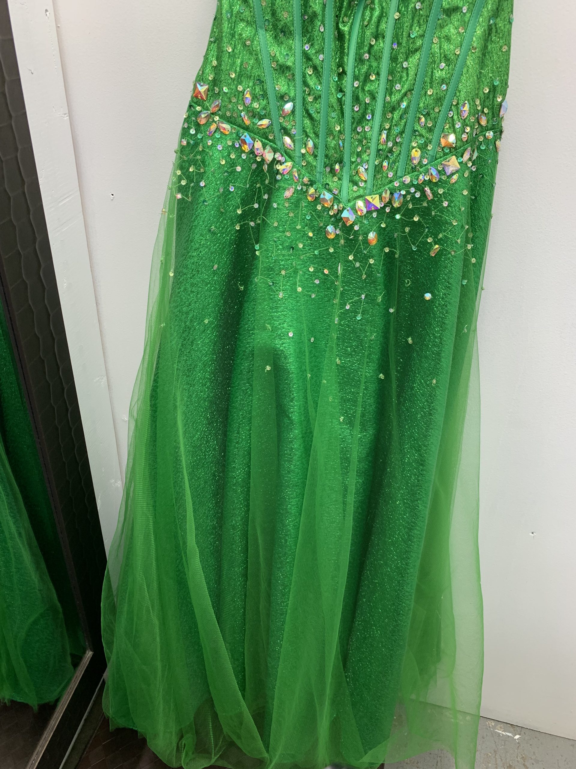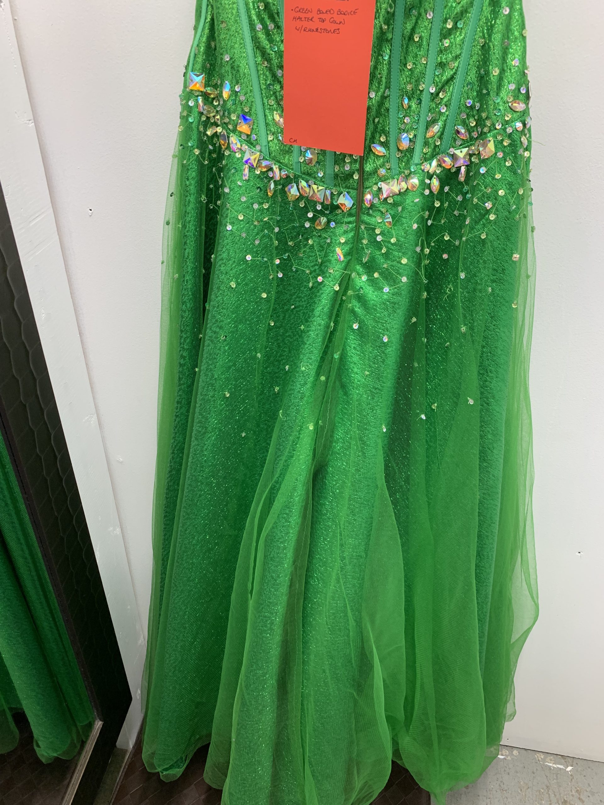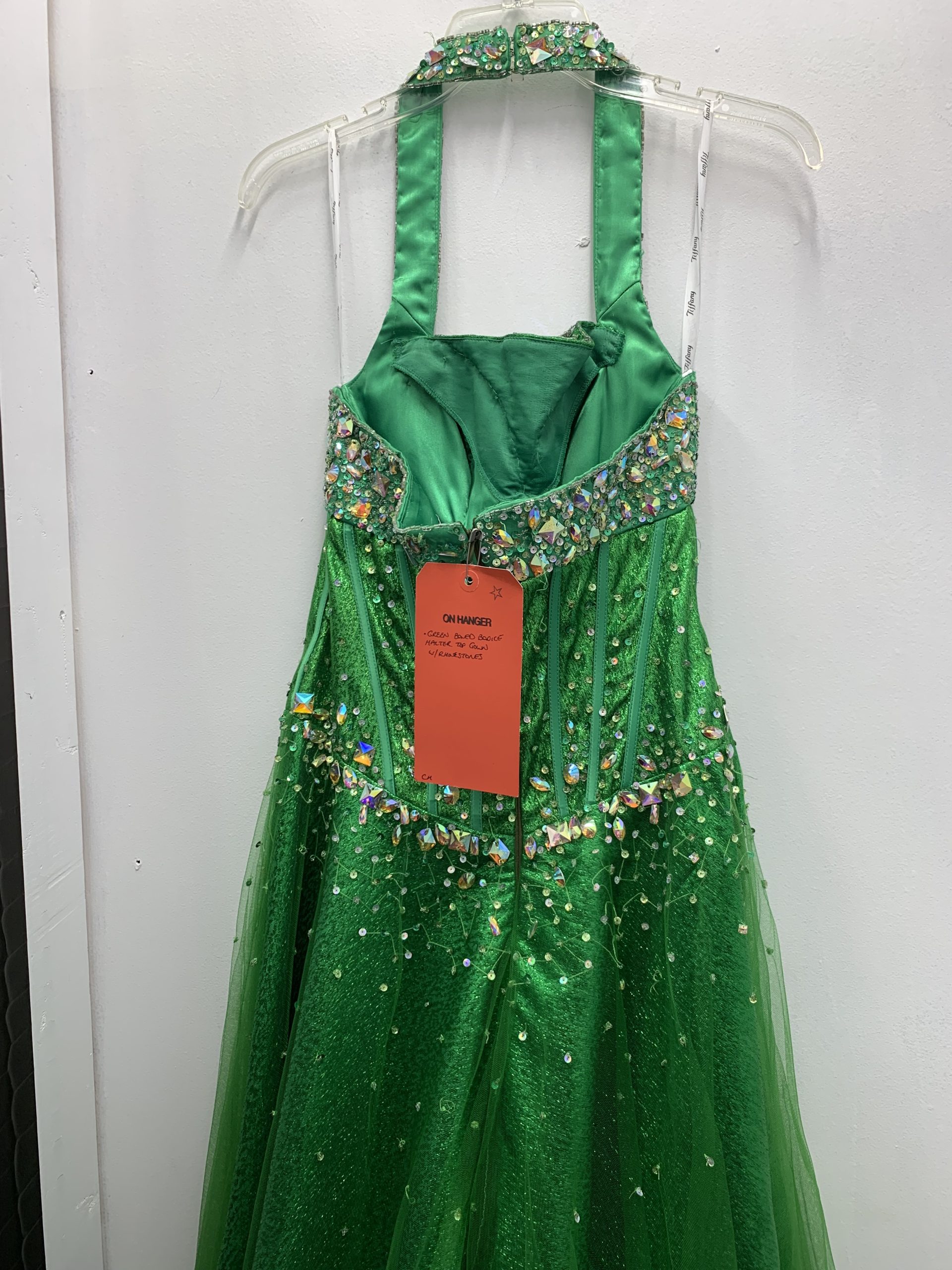 Green Boned Bodice Halter Top Gown w/Rhinestones