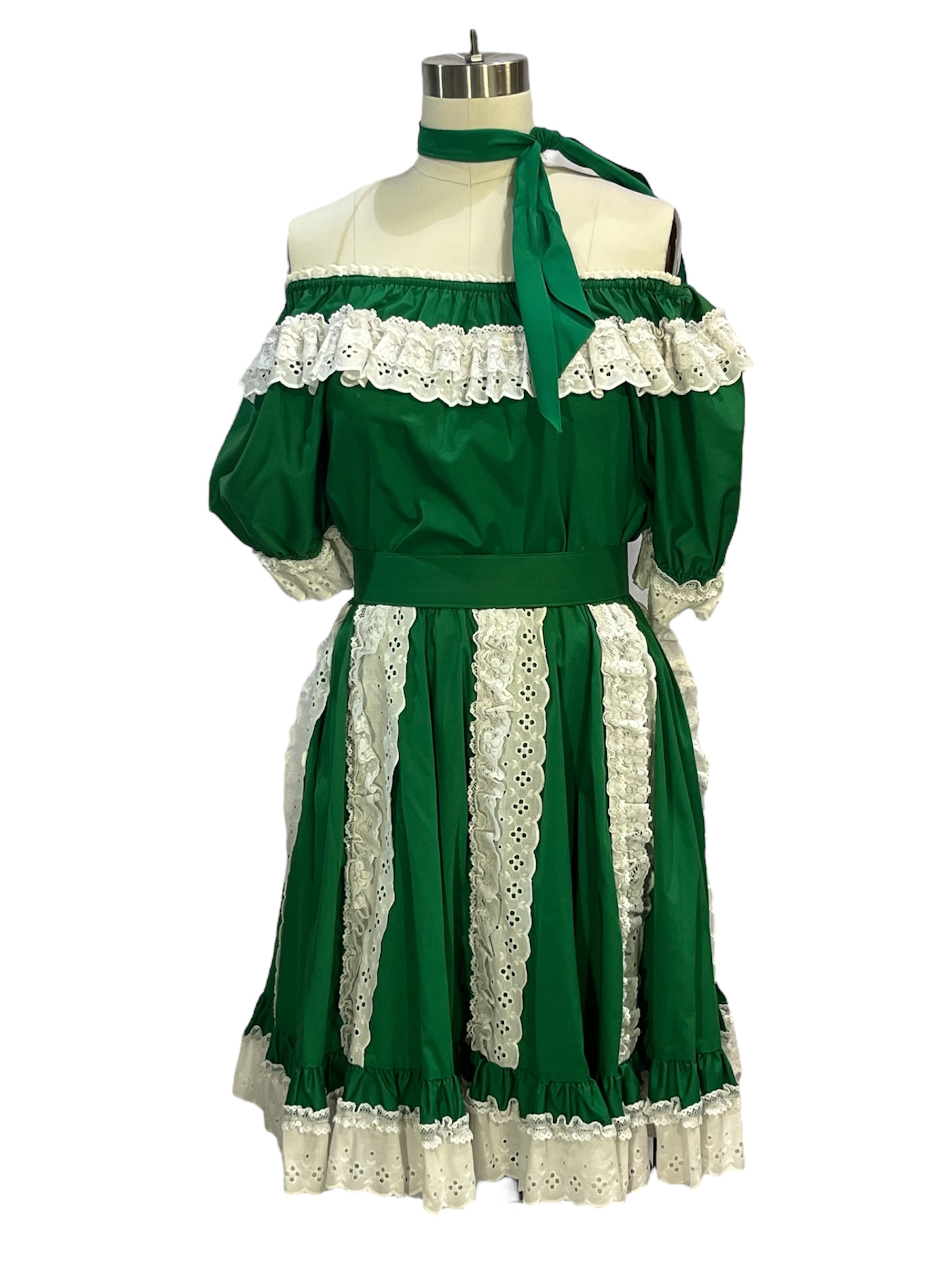 Green Shirt w/White Lace, Green Skirt, Matching Belt, Hair Tie MM Crinoline