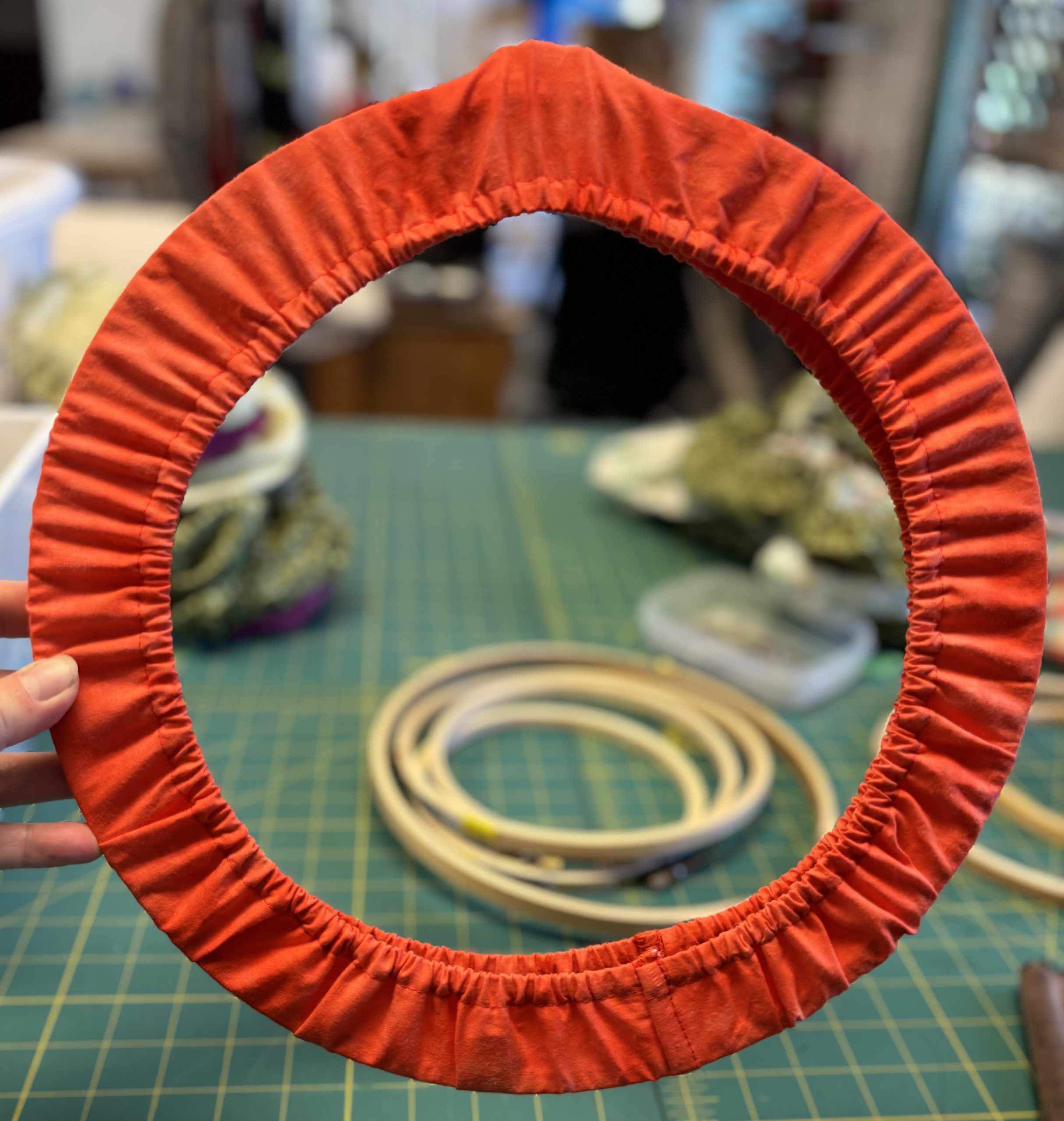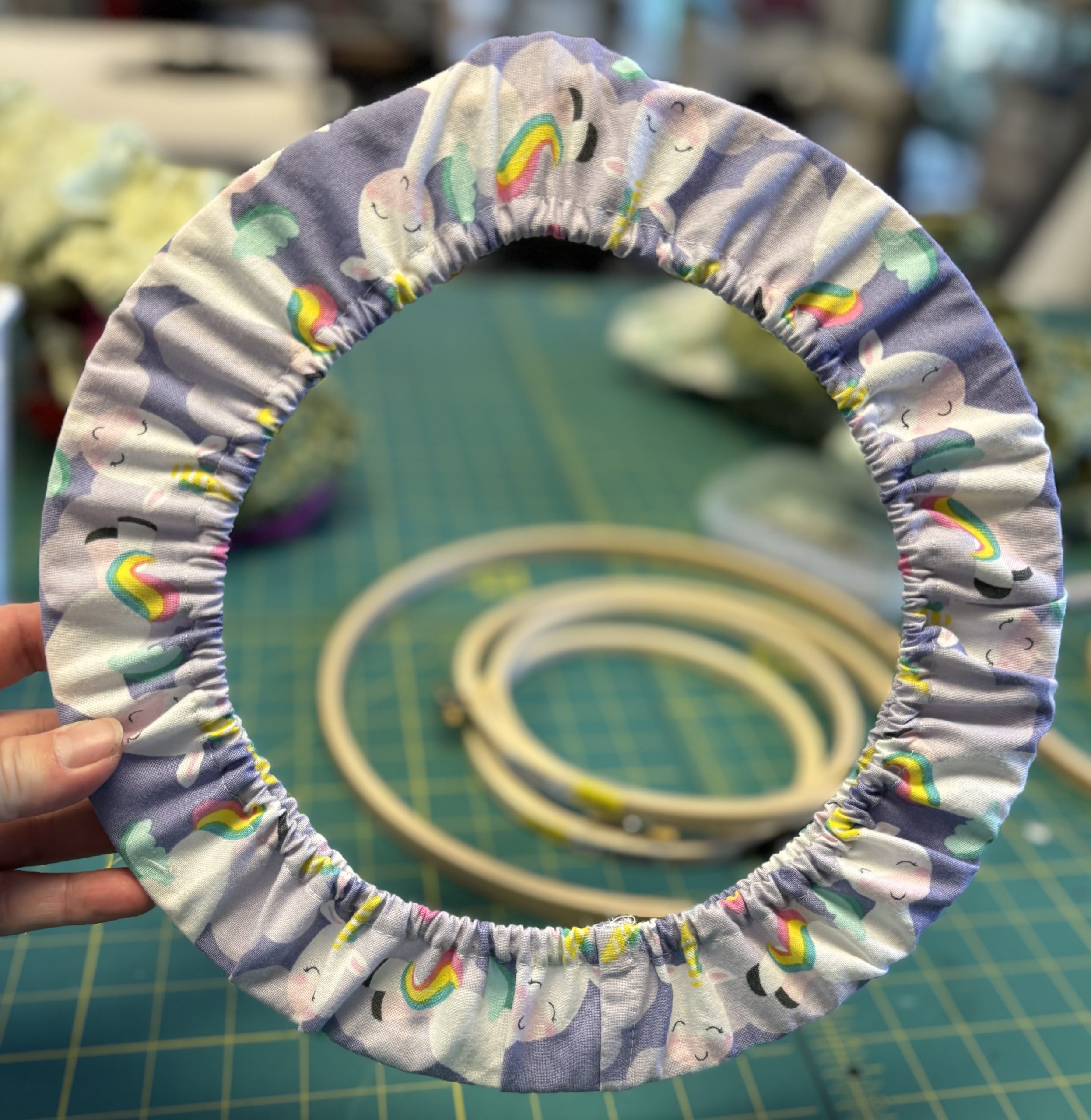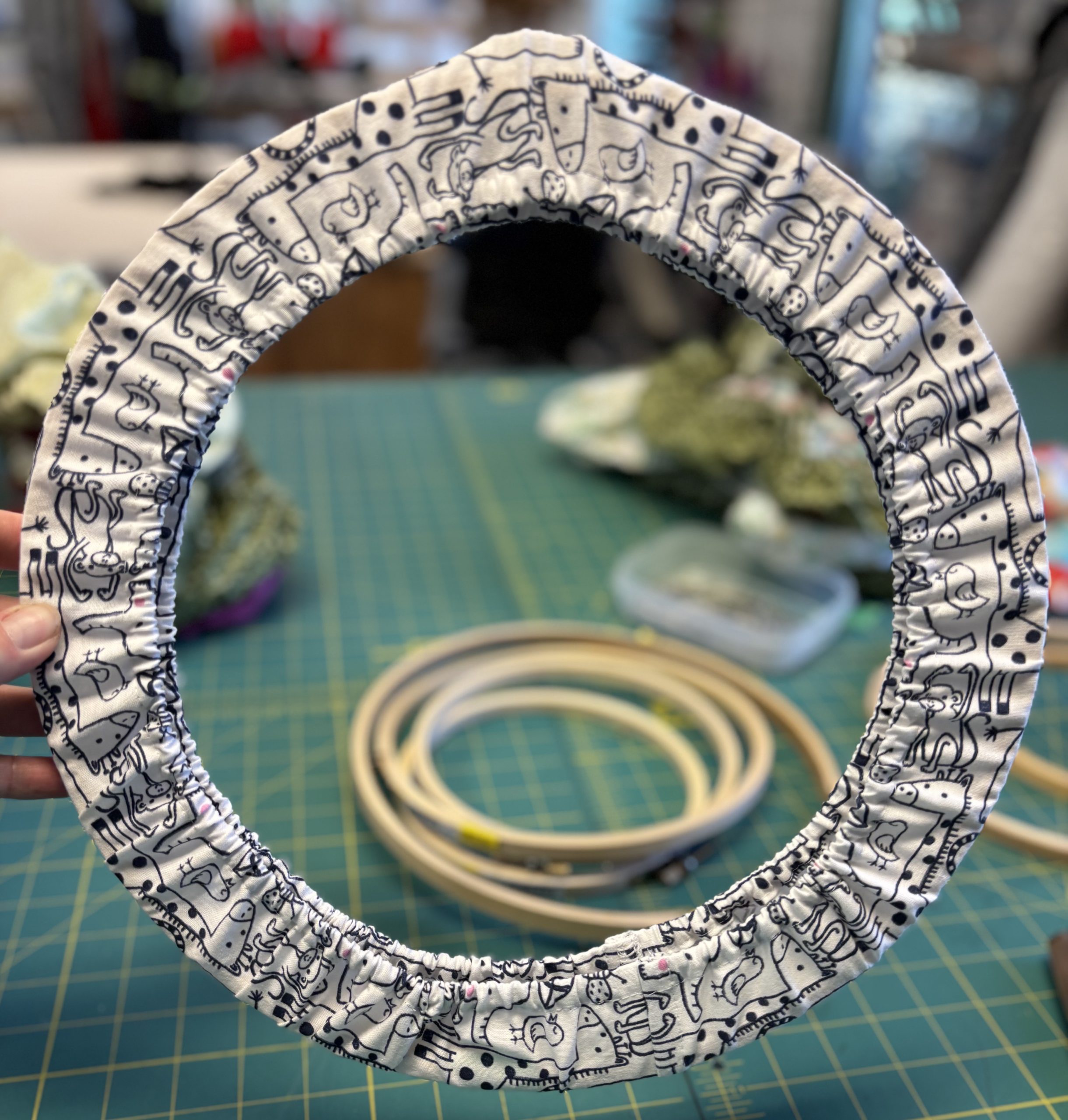 100% Cotton, pre-washed. Each Hoop Grime Guard has 2 elastic casings to fit your frame perfectly.