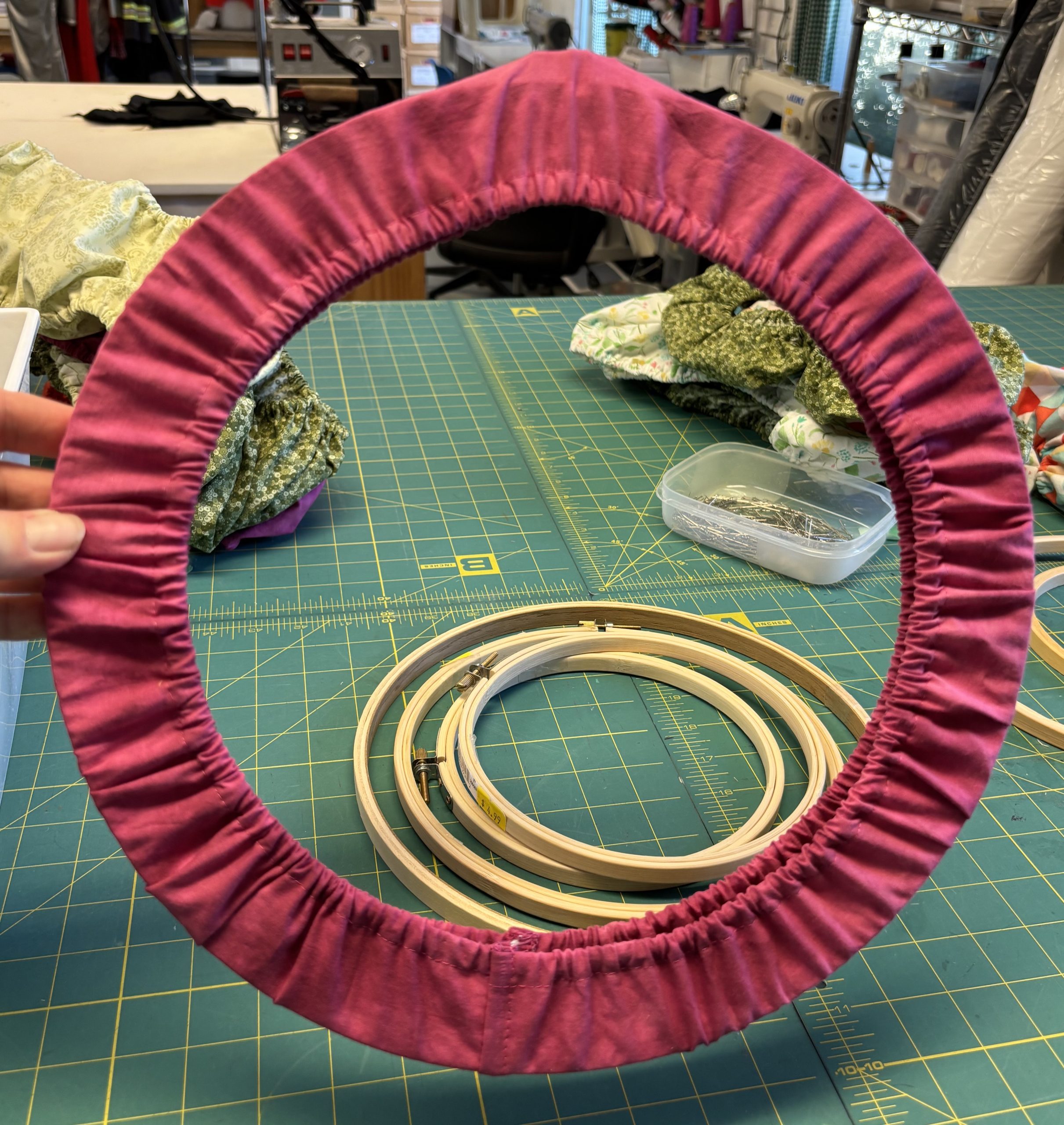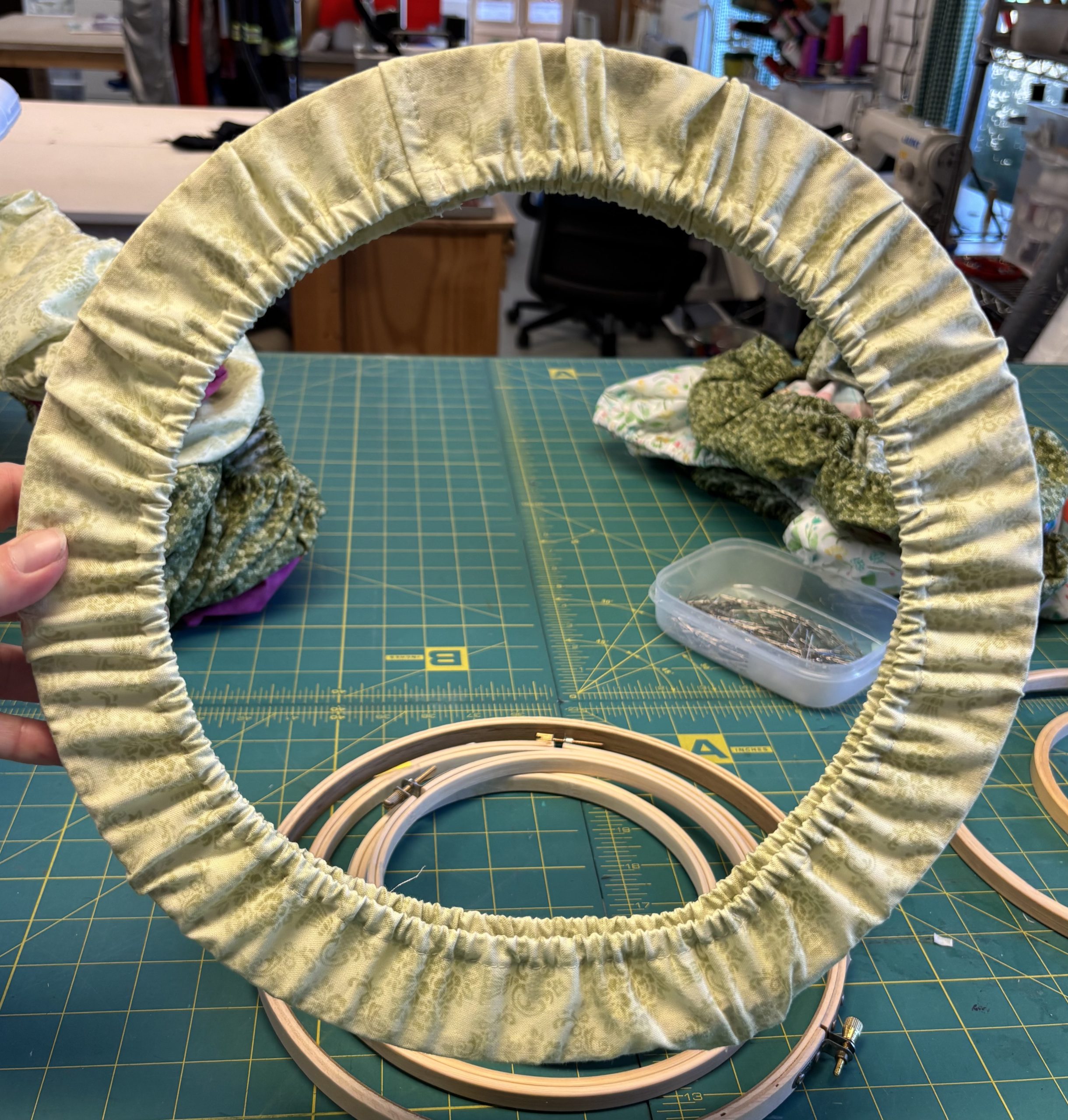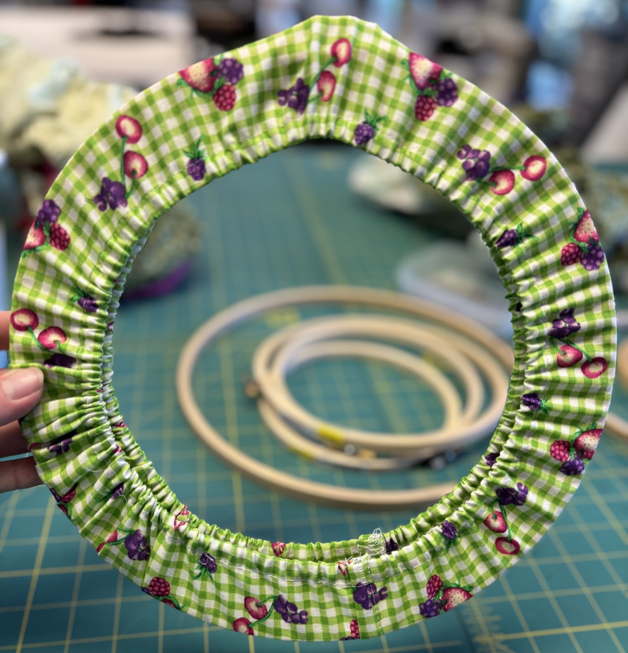 100% Cotton, pre-washed. Each Hoop Grime Guard has 2 elastic casings to fit your frame perfectly.