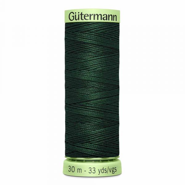 A strong, heavy polyester thread with a silk-like luster which remains soft and supple. Ideal for bold decorative stitching, manually stitched button holes and button sewing. Best results are achieved with Gütermann top stitch thread in the sewing machine needle and Gütermann Sew-all thread in the bobbin. Light green spool. 3-ply. Suggested needle size: US 16/19 (100-120).