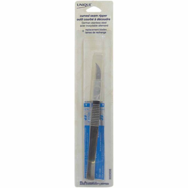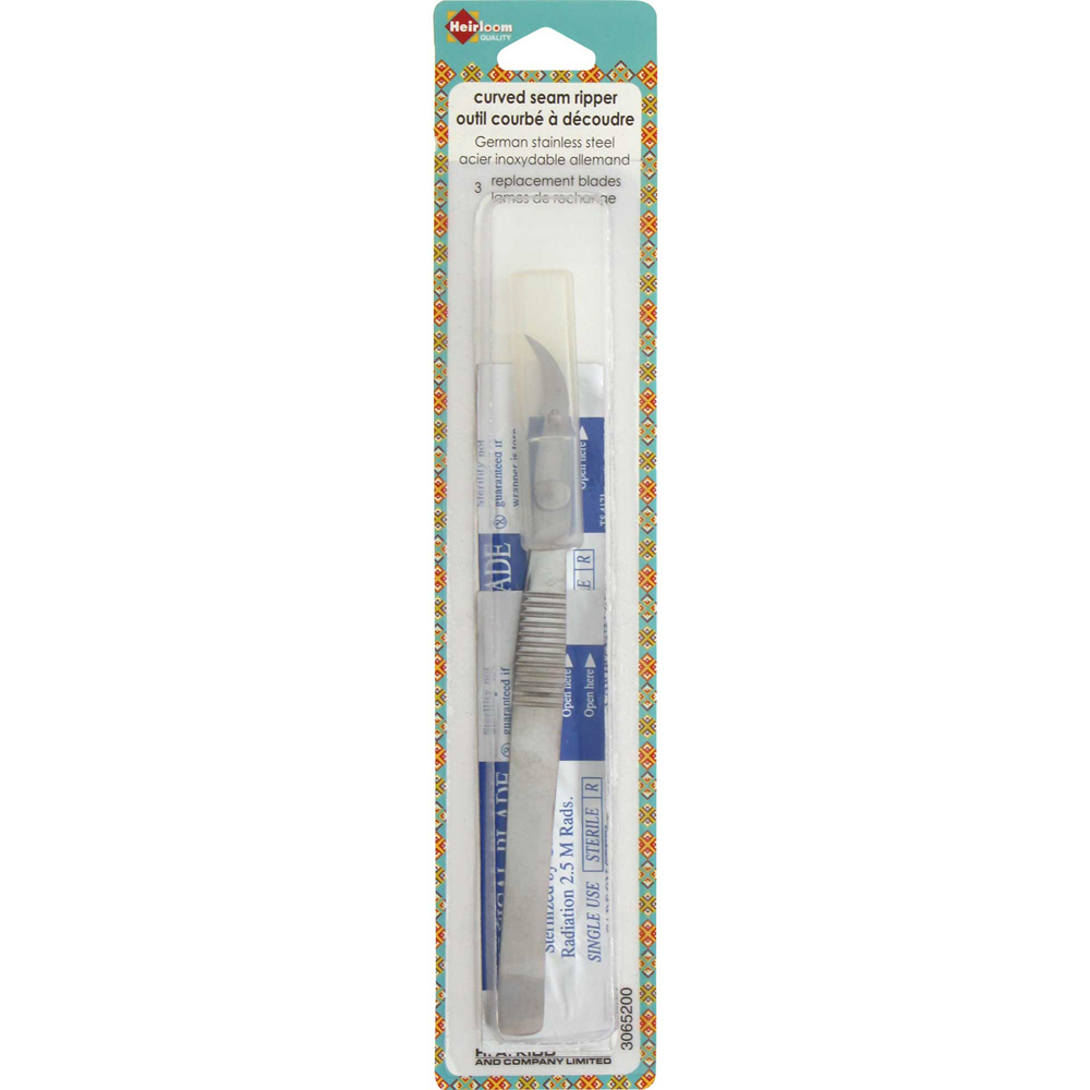 Includes three (3) replacement blades. Very thin curved stainless steel blade makes it easy to rip straight or serged stitches.