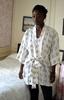The Hapi is a shopcoat traditionally worn by storekeepers, craftsmen, and firemen over western-style clothing. It is sized for both men and women. Simple rectangles form the body, sleeves, neckband, and shoulder reinforcement for this unlined, fingertip-length garment.