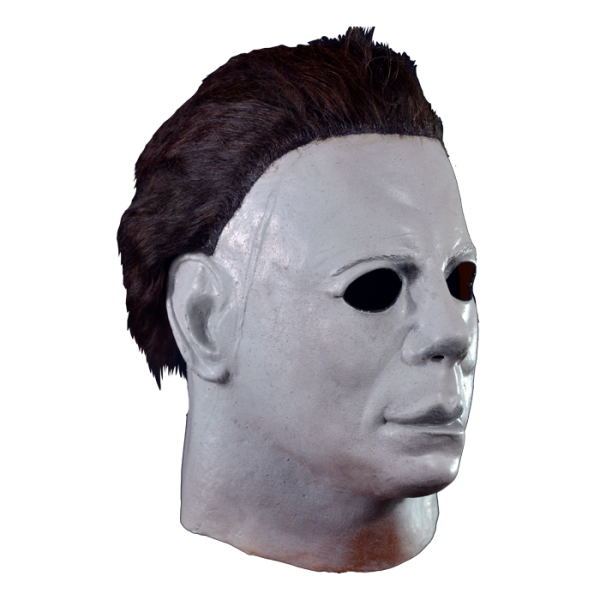 This mask is based on the the famous back-lot picture of Dick Warlock wearing the Halloween II mask right before they shot the final Hospital scenes.
